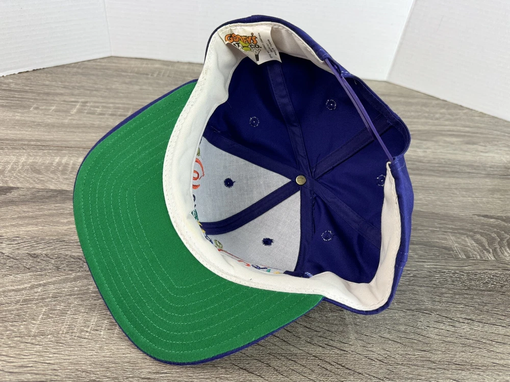 This vintage Goofy hat is absolutely fantastic! The colors are so vibrant and the adjustable snap makes it fit perfectly. It's got that awesome retro Disney charm with just minor signs of wear that give it character. I'm thrilled with this find!