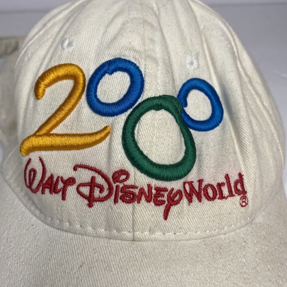 WALT DISNEY WORLD 2000 BASEBALL HAT WHITE ADJUSTMENT CLASP A LITTLE RUSTY
