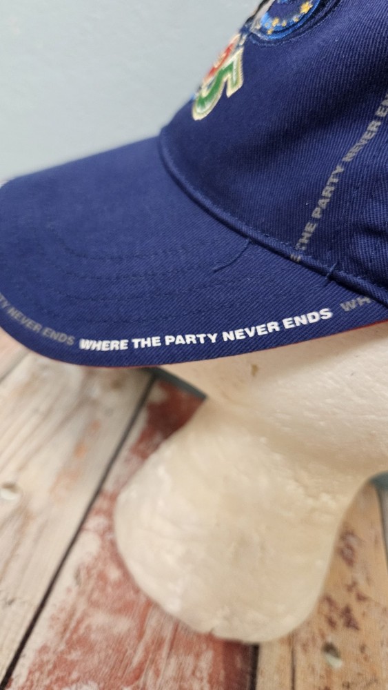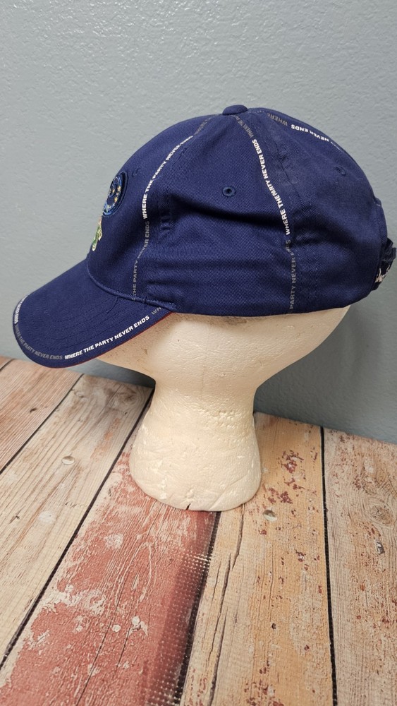 The product is a Walt Disney World baseball cap featuring Mickey Mouse, released in 2005. This blue hat is suitable for adult unisex wear, with an adjustable size for a perfect fit. Made in China, this collectible cap captures the magic and whimsy of the Disney franchise, making it a must-have for fans and collectors alike. The iconic Mickey Mouse character adds a touch of nostalgia and excitement to any outfit, ensuring that the party never ends for those who wear this special hat.
