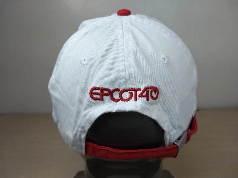 Epcot 40th Baseball Hat Adjustable Strapback See pictures for exact item and condition details. This hat is in good condition, but does have some signs of use and being stored. Fabric is a little wrinkled. Tag was cut off. A more detailed cleaning could possibly reduce or remove some condition issues. Items are pre-owned/used condition and may contain signs of wear, stains, or blemishes. All of our hats receive a basic cleaning and disinfecting. Please verify fit prior to purchase. Mannequin head circumference is approximately 22in. Shipped in a box to maintain shape. Thank You! Please save our store in your favorites and visit often. Hundreds of new items added weekly. FREE SHIPPING ``````````````````````````````````````````````````````````````````````````