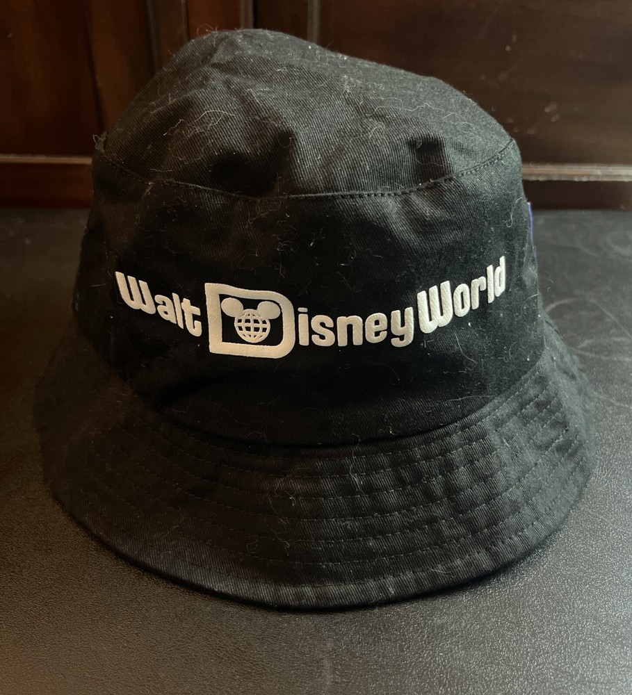 The product is a black bucket hat featuring the Spirit Jersey brand, themed after Walt Disney World. It is officially licensed by Disney and manufactured in Jersey. This hat is a stylish accessory perfect for showing off your love for Disney while visiting the parks or adding some magic to your everyday outfit. WORN ONCE