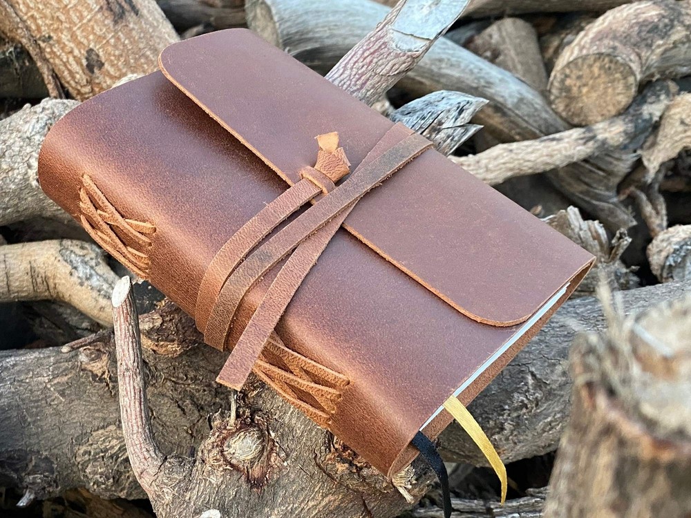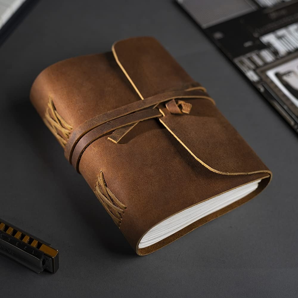 WANDERINGS Leather Bound Notebook - 7x5 - Blank Pages - Hand-Crafted Genuine Leather Writing Notebook - Makes a Great Gift for Writers Poets and Travelers. Description Features: Beautifully Handcrafted High quality,Thick, full grain 100% leather notebook that looks, smells and feels beautiful, 7x5'' / 18x13cm. Vegetable-tanned buffalo leather will age with character - a lifelong keepsake for your thoughts and expressions A Timeless Gift: Give a gift that can be cherished forever. Ideal as a leather diary, sketchbook, writing journal, poetry journal - it is only limited by your imagination. Makes a perfect gift for women or men Premium Recycled Cotton Paper is acid-free, chemical-free and tree-free. Enjoy 240 pages (120 sheets) ofThick 120 GSM Blank unlined paper. Fountain Pen friendly paper prevents bleed-through. (non-refillable) Attention To Detail Our unique leather journals are carefully crafted for quality. You'll love the look, feel and longevity Product Details: Brand: WANDERINGS Color: Unlined Pages: 240 Pages Cover Material: Leather Style: Handmade Paper Ruling Type: Unlined Number of Items: 1 Specific Uses For Product: Writing, Sketching, Drawing, Journaling Pattern: Solid Color Number of Sections: 1 Manufacturer: Wanderings Brand: WANDERINGS Item Weight: 1.12 pounds Product Dimensions: 7 x 5 x 1 inches Item model number: TMJ57-01 Color: Unlined Cover Material: Leather Material Type: leather Number of Items: 1 Size: 13x18 cm Ruling: Unlined Manufacturer Part Number: TMJ57-01 Date First Available: August 1, 2020 Handling We will ship all orders within 3 business day of payment. Delivery We Do Not Ship Outside of the Continental US. Return Policy All items qualify for returns within 30 days of receipt. Buyer is responsible for return shipping on any item that is not damaged. Feedback We take our reputation seriously, we buy and sell online, so we understand the value of trust. If you are unsatisfied with your order, please contact us and we will work with you to resolve it to your satisfaction.