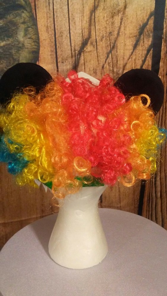 WDW AUTHENTIC DISNEY PARKS MICKEY MOUSE Rainbow Afro Adult Clown Ear Hat Cap New with Tag Stretch to fit When you want to clown around!