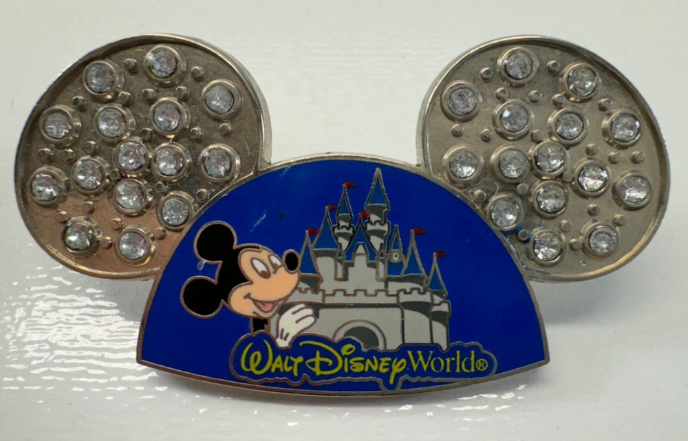 WDW Celebrate Everyday Mickey Mouse Jeweled Ears Hat w/Castle Pin # 67269 Measures approx 1 1/8 x 2 inches