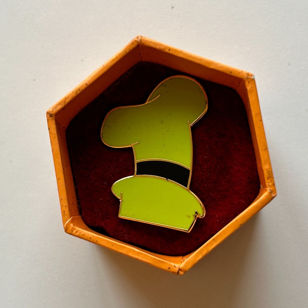 Thanks to PinPics for the information below. Pin Information Origin WDW - Walt Disney World Edition Open Year on Back 2002 Original Price $ 10.00 SKU Dimensions Front Description This is one of a Cast Exclusive Pins release at WDW to Cast Members. Each box has a ribbon handle and a label on the bottom of each box that reads..."If found, please return to . Walt Disney World, with the Character's signature. This is Goofy's lime green w/black strap Hat. It comes in a round in an orange and blue octangle box with black foam that the hat sits on. Please make any corrections to your address prior to payment. Address corrections will not be made after purchase. Authenticity & Condition We will not sell pins that we suspect to be scrappers or fakes, however it is not possible to 100% guarantee authenticity on any pin obtained secondhand, as many of our pins are. We use our best judgement to determine authenticity of the pin and post pictures of the exact pin that you will be getting, so that you may also use your judgement. We have many happy customers. Please feel free to check out our positive feedback, and even our repeat customers. Payment & Shipping We accept all major credit cards through eBay managed payments. Payments must be made immediately. Shipments are made only to the address on the order. Please make any corrections to your address prior to payment. Address corrections will not be made. No trades or offers will be accepted . We place the pin(s) in a heavy duty zip bag, and ship the pin(s) in a bubble envelope . We combine shipping costs. Shipping for additional pins is only $0.50 each. On Buy it now listings you must put the items into your cart and pay at once for the multiple item discount. Payment for your item(s) on Auctions is expected within 3 days of your purchase. We offer USPS First Class Mail within the Domestic US. Shipments occur Monday - Saturday within 24 hours of payment received from a confirmed Paypal address. Purchases made on a weekend or holiday will ship out on the next business day. Purchases will receive a tracking number to monitor your shipment. Please allow 24 to 48 hours for tracking information to update on the shipping company's website. This is normal; please do not be concerned if this is the case with your package. Returns All of our auctions are for the pin(s) shown in the pictures, on an "as is" basis. Due to a rising concern over people buying authentic pins and returning fakes, returns are only accepted if we make a mistake and send an incorrect item, not solely based on the correctness of our assessment of a pin's authenticity.