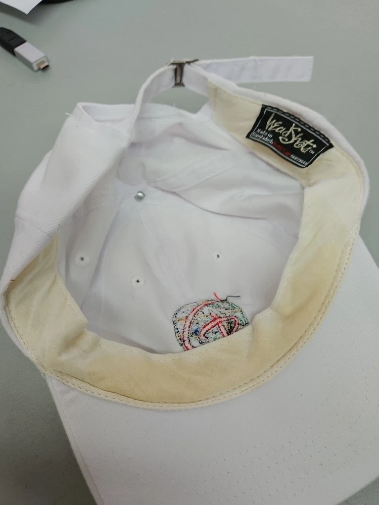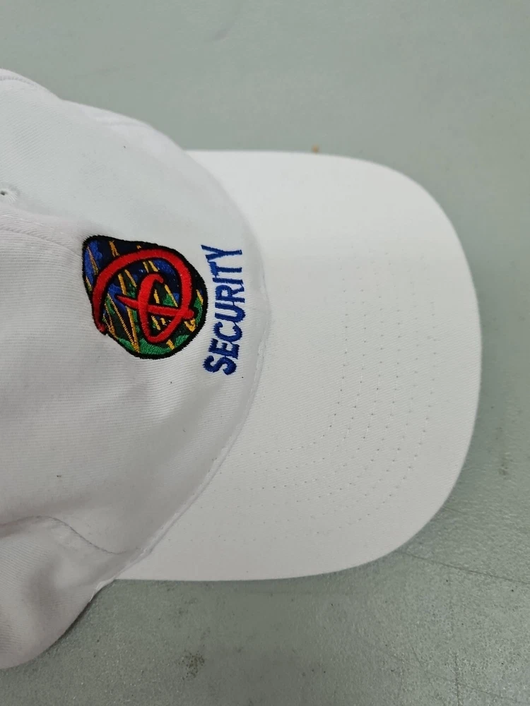 RARE VERSION - CAST SECURITY HAT ADULT ADJUSTABLE STRAPBACK GOOD CONDITION - DISCOLOR ON FRONT OF INNER HEADBAND AND HAS BEEN CLEANED AND SANITIZED - SEE PICS AS-IS *for returns we refund the item val...