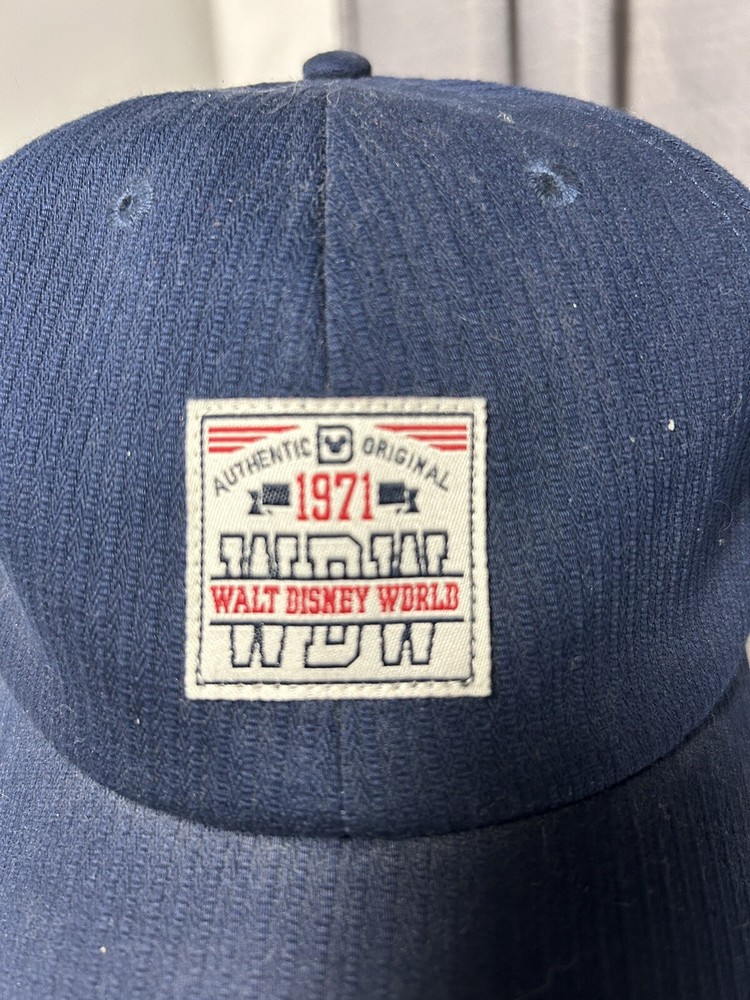 Get ready to add a charming and vintage touch to your wardrobe with this Walt Disney World Mickey Mouse Blue Corduroy Adjustable Cap Hat. This unisex hat, suitable for adults, features the famous Mickey Mouse character from the Disney franchise and was sold by Disney Parks in 1971. The adjustable feature makes it a comfortable fit for all sizes. The blue color gives it a unique and eye-catching appearance, perfect for any Disney fan or collector. Add this item to your Disneyana collection or wear it to your next Disney adventure to show your love for the magical world of Disney!