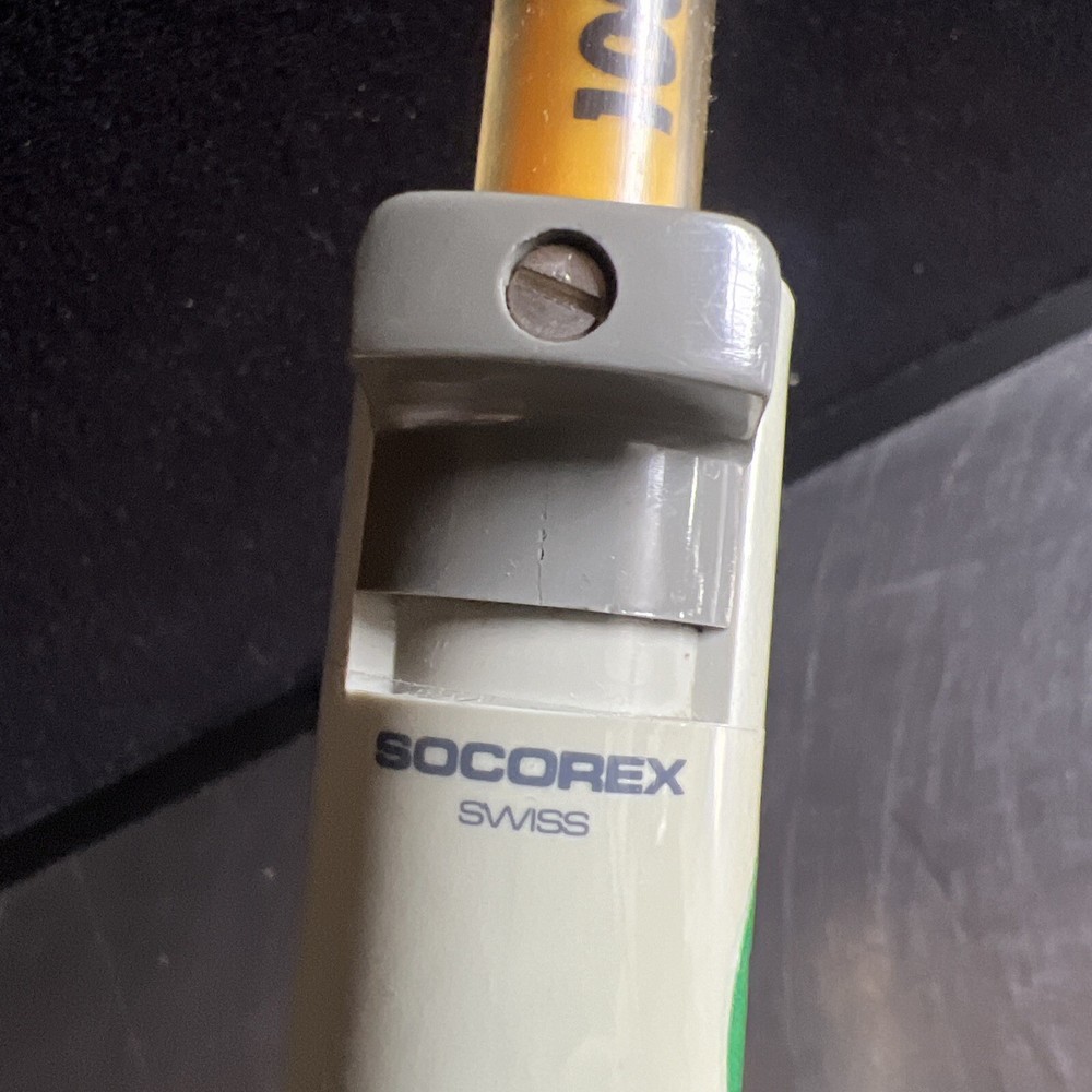 Up for sale is a high-quality micro pipettor from WHEATON, a trusted brand in the laboratory equipment industry. This particular model is the Socorex Variable Volume Micro Pipette with a 100uL volume capacity. Made of durable plastic materials and manufactured in Switzerland, it is suitable for use in various laboratory settings such as physical, dental, medical, microbiological, and biological laboratories. This pipette is a reliable tool for precise liquid handling and is ideal for a range of applications. It is compatible with a variety of solutions and is easy to use, making it a must-have for any laboratory. Bid with confidence on this top-of-the-line micro pipettor.