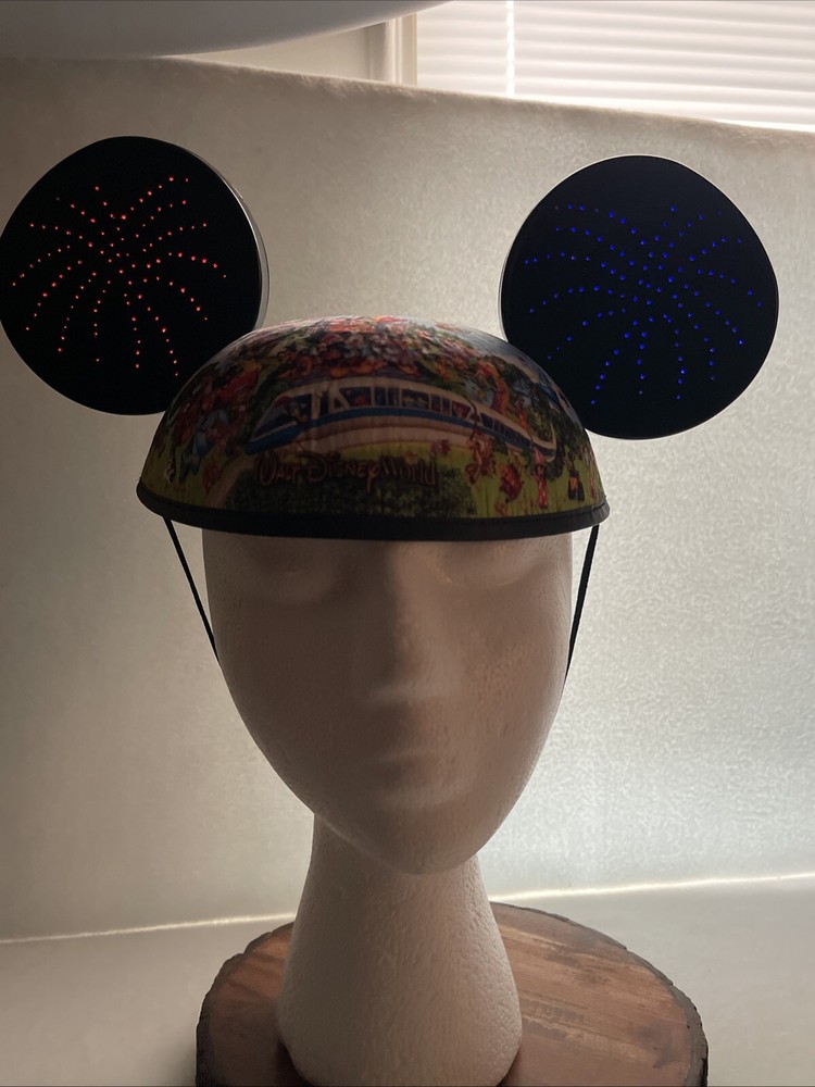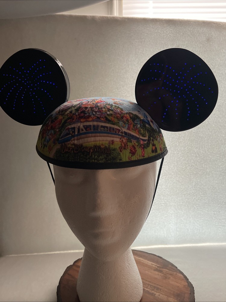 This is a Disney World Mickey Mouse ears Storybook hat with light-up fireworks. It is suitable for unisex use and features a multicolor design. The hat is from the year 2012 and is part of the Disney franchise. It is one size fits all and is a contemporary item manufactured in Thailand. The hat is themed around Mickey Mouse and the Disneyland WDW Walt Disney World.