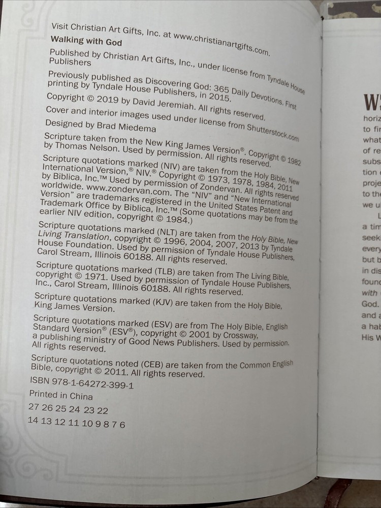 Walking with God by David Jeremiah 2019 Tooled Faux Leather 365 Daily Devotions. Condition is Good. Shipped with USPS Media Mail.