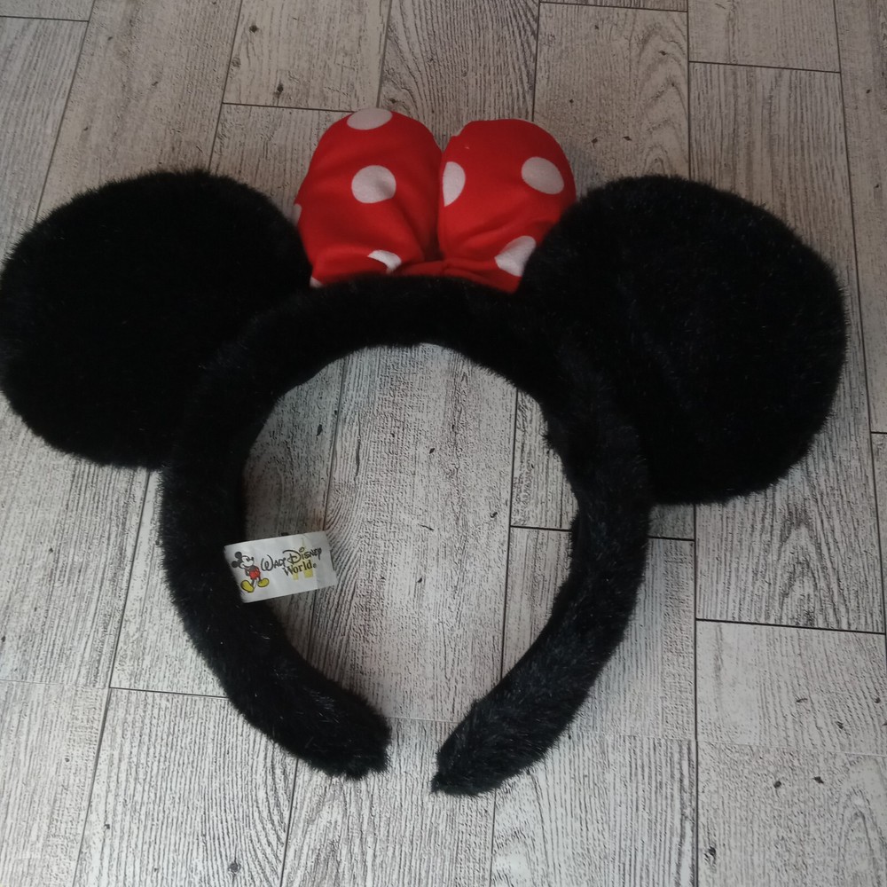 Walt Disney World, Parks. Minnie Mouse ears, headband with a plush red velour and white polka dot bow in a soft fur. This is in excellent condition and is clean too. Please check out all of the pictures to see exactly what you will be receiving in this listing. Thanks for looking at my listings.