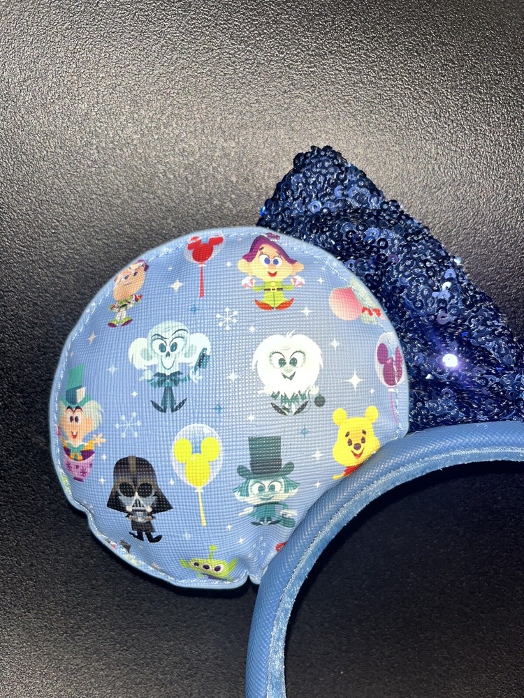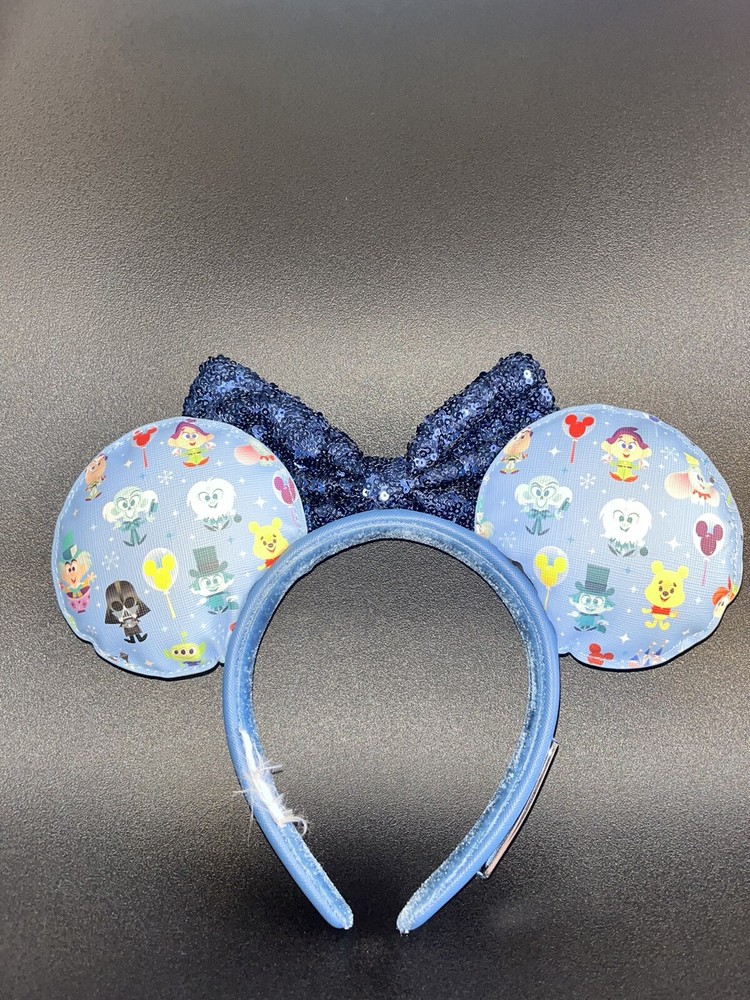 Get ready for some Disney magic with these adorable Mickey and Minnie Mouse ears headband from Disney Parks Loungefly collection. This headband is perfect for fans of all ages, from kids to adults, and is one size fits most. The blue color and chibi park icons design will make you stand out in the crowd and show off your love for Disney in a stylish way. The headband is made of high-quality materials and features the iconic Mickey Mouse ears with a cute Minnie Mouse bow. This headband is a must-have for any collector of Disney memorabilia, especially those who love Mickey Mouse ears and contemporary Disney items. Get ready to make memories and have a magical time at Disney Parks with this comfortable and fashionable headband. Amazing condition, tags have been removed but brand new and very comfortable TAGS: Minnie Mouse Mickey Mouse Disney Parks Loungefly Minnie Ears Buzz Lightyear Dumbo Darry Vader Magic Kingdom The Haunted Mansion Winnie the Pooh Toy Story Sequin Minnie Ears