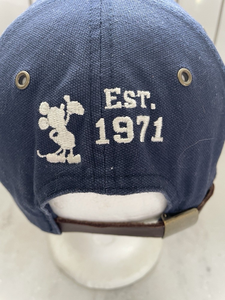 Show off your love for Disney with this navy blue and red baseball cap featuring the iconic Mickey Mouse. This adjustable hat is perfect for adults and fans of the Disney franchise. The hat is adorned with the Disney brand name and the words "Walt Disney World 1971" for added flair. This collectible hat is a must-have for any Disney enthusiast and is sure to be a great addition to your wardrobe. Whether you're visiting the theme parks or just want to show off your love for Disney, this hat is the perfect choice.