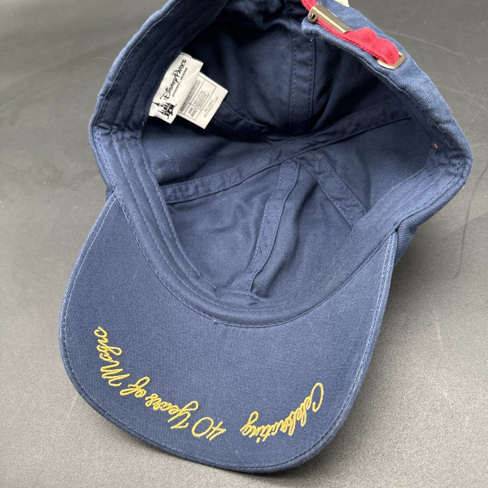 Celebrate the 40th anniversary of Walt Disney World with this blue strapback hat cap. Featuring the beloved character Mickey Mouse, this hat is a must-have for any Disney fan. Made by Disney Parks, this hat is of high quality and perfect for adults. The color blue adds a pop of fun to any outfit and the strapback ensures a comfortable fit for all-day wear. This hat is a great addition to any collection of Disneyana and is sure to be a conversation starter. Get yours today!