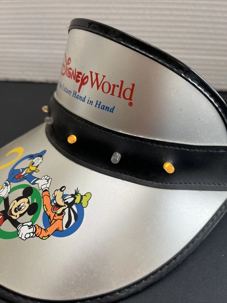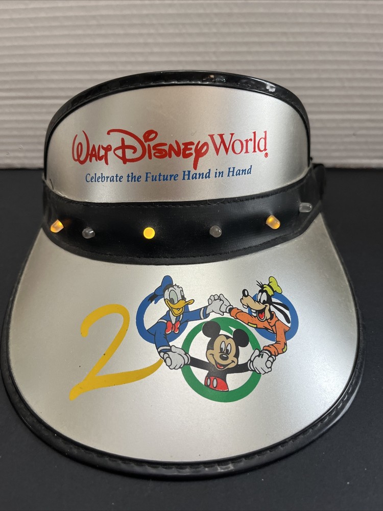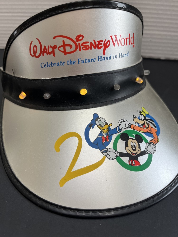 This is a Walt Disney World 2000 adult size light-up visor featuring a multicolor design. It is part of the Disney franchise and has been tested to ensure it works properly. Perfect for collectors or fans of Disney memorabilia. Takes 1 9V battery (not included) Please see all photos for full description Photos are with the lights flashing Thanks for looking.