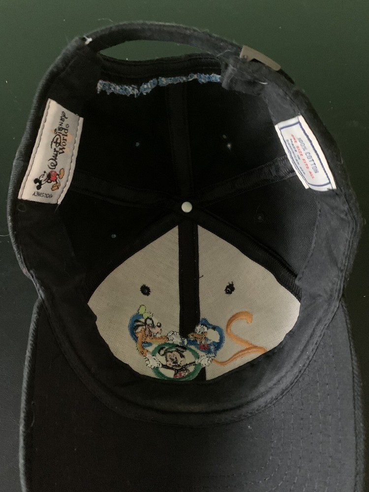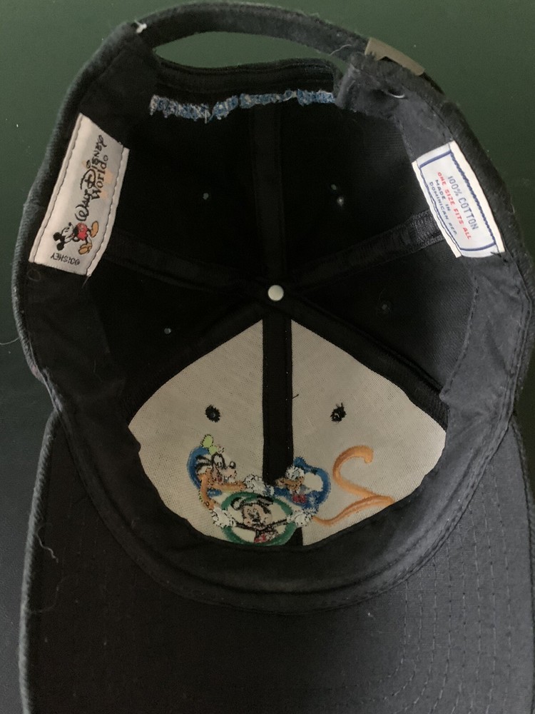 This Walt Disney World 2000 baseball cap is a must-have for any Disney fan. Featuring the iconic Mickey Mouse character, this adjustable black cap is perfect for casual occasions. Made from cotton and canvas fabric, this pre-owned hat is in great shape and ready to be worn. The hat also includes useful features like an adjustable strap, making it a great fit for any head size. So whether you're looking for a souvenir from your trip to Walt Disney World or just want to show off your love for the magical world of Disney, this baseball cap is the perfect addition to your collection. ONE DAY SHIPPING!!!