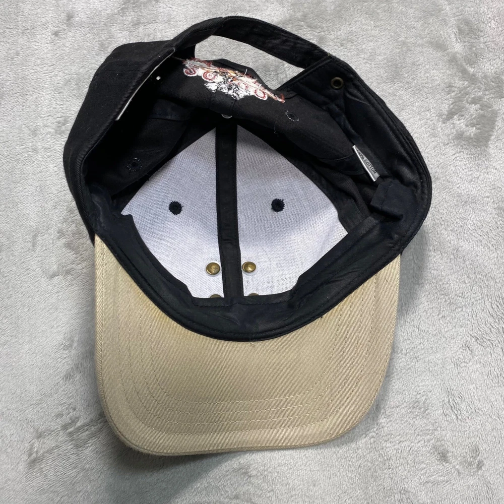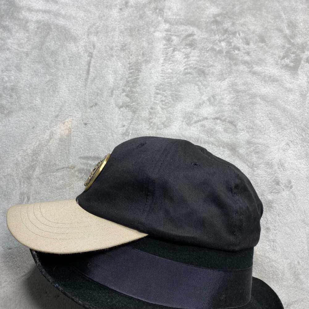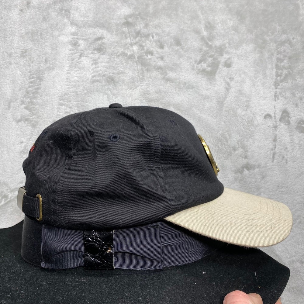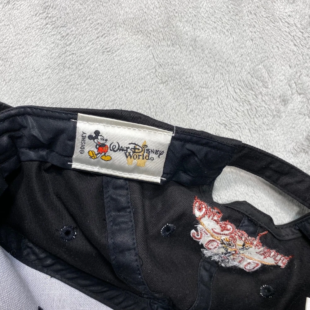 A vintage Walt Disney World baseball cap commemorating the year 2000. This black cap features a tan brim and an adjustable strap with a brass-tone buckle. The front showcases a gold-tone metal emblem with the "M" logo and "2000" inscription. The back of the cap is embroidered with "2000" and Mickey Mouse, along with "Walt Disney World" in red lettering. Keywords: Walt Disney World, Disney, Mickey Mouse, Baseball Cap, Hat, 2000, Vintage, Embroidered, Adjustable, Souvenir, Collectable, Theme Park, Disney World, Disney Hat See photos for exact condition and sizing. Shirts: Chest (pit to pit) and length Bottoms: Waist (flat) and inseam We ship most orders same or next day. Secondhand thrifted items they may have residual odors from previous storage, smoke, pets, cooking, or other environmental factors. Sensitive buyers should take this into account before purchasing. Items are sold as they are and may require laundering or airing out upon receipt. Messages may take up to 48 hours Thanks Bob