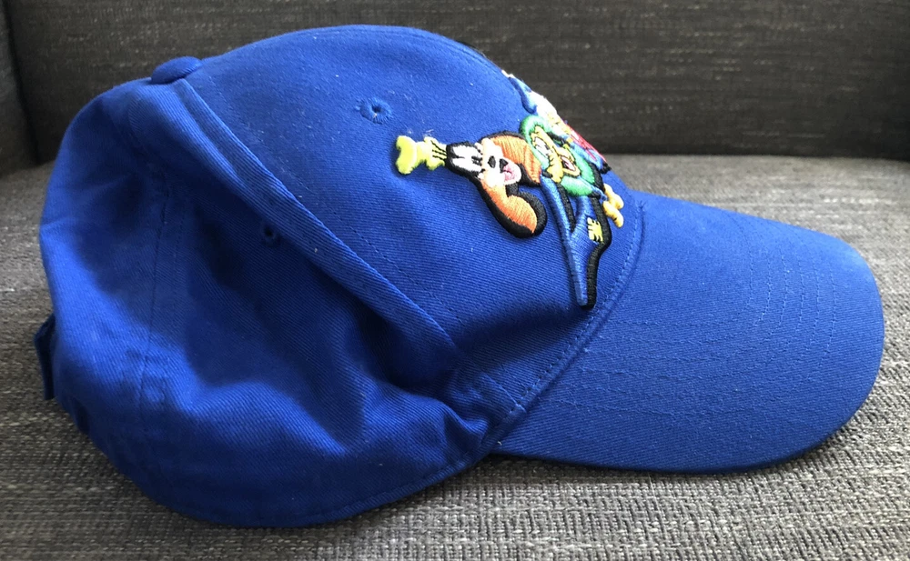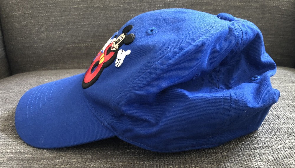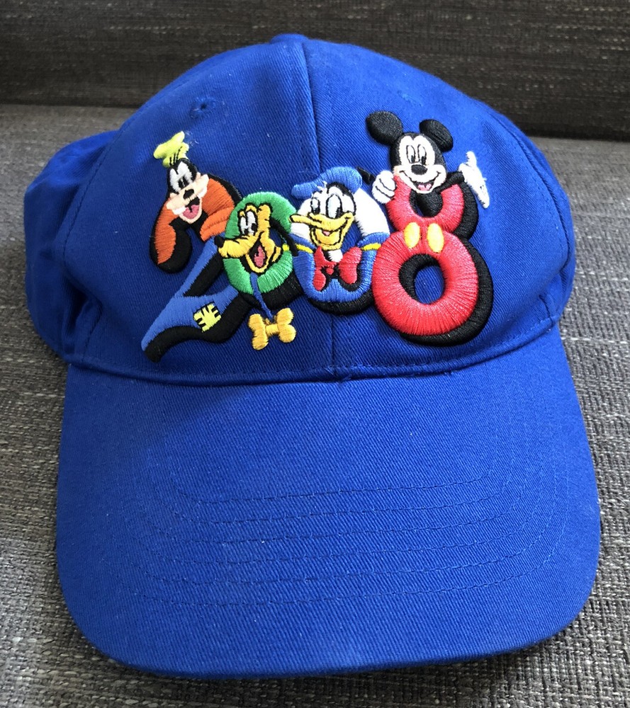 You are bidding on a Walt Disney World 2008 Mickey Mouse Goofy Donald Baseball Hat Blue Embroidered. This is a Youth adjustable Hook And Loop Hat. This hat is in pretty nice used condition. Please check out all my photos to make sure you will be happy with this item before bidding. Thanks for looking!!!