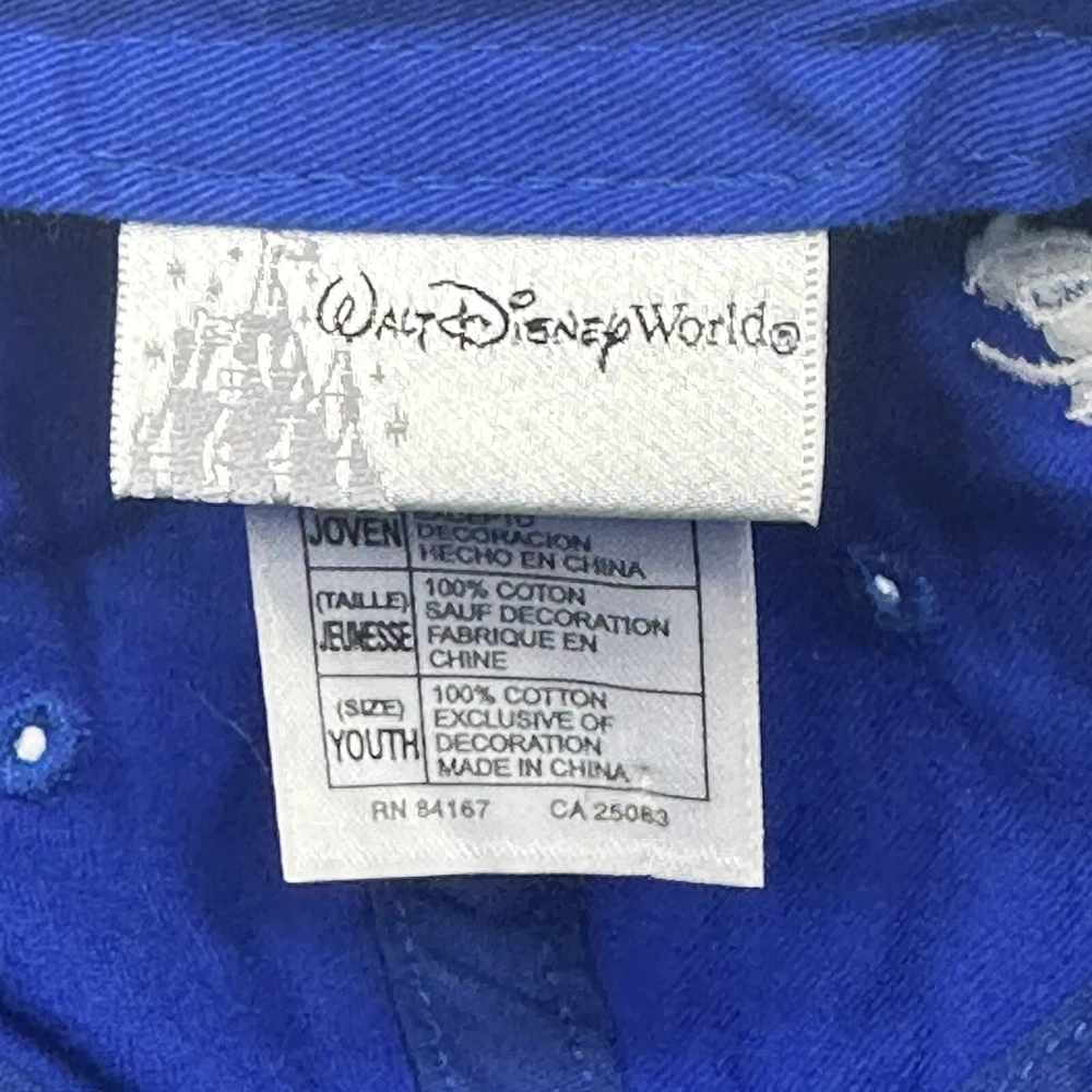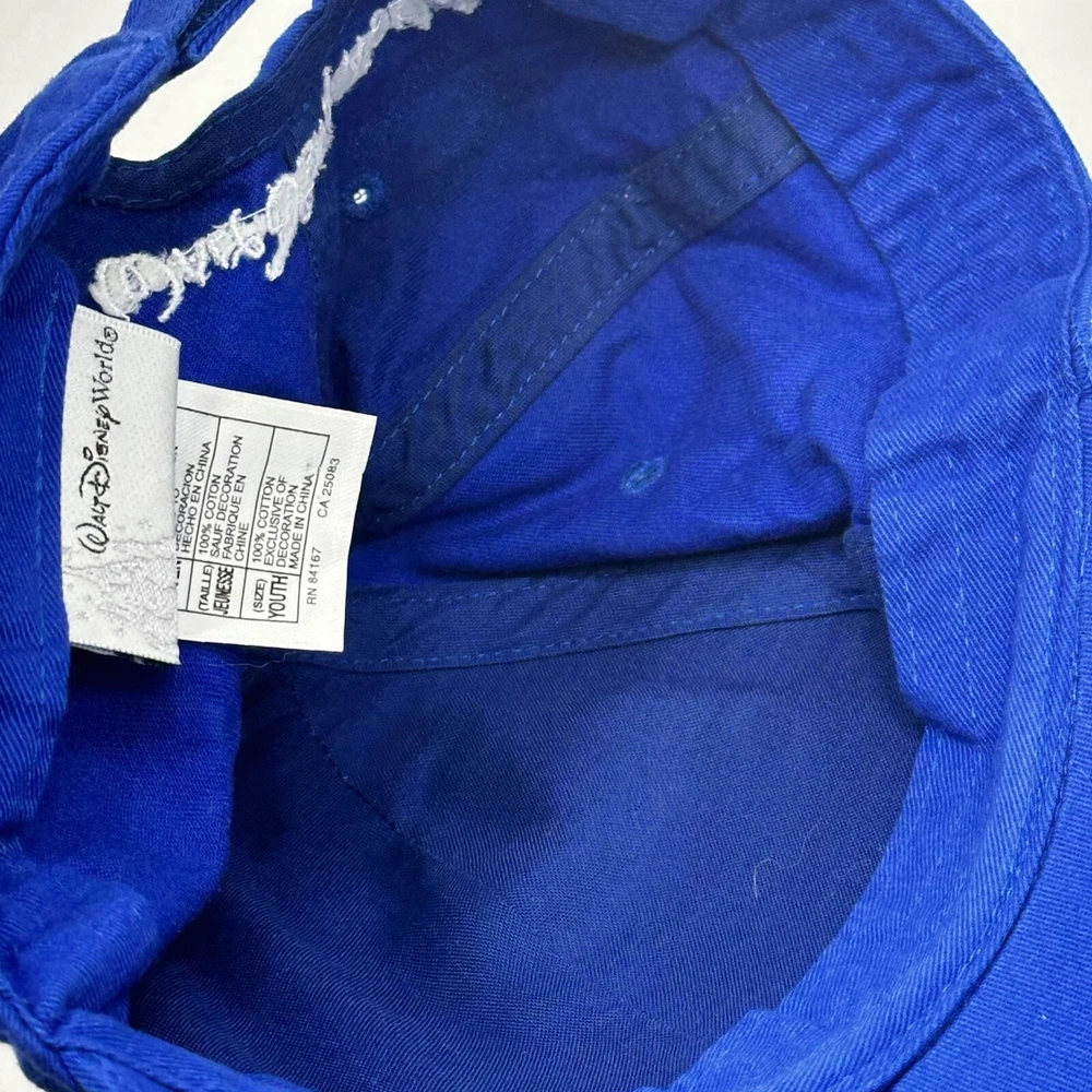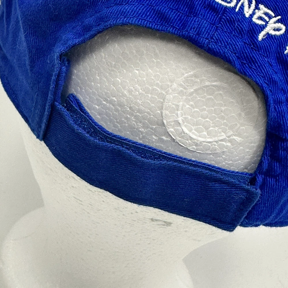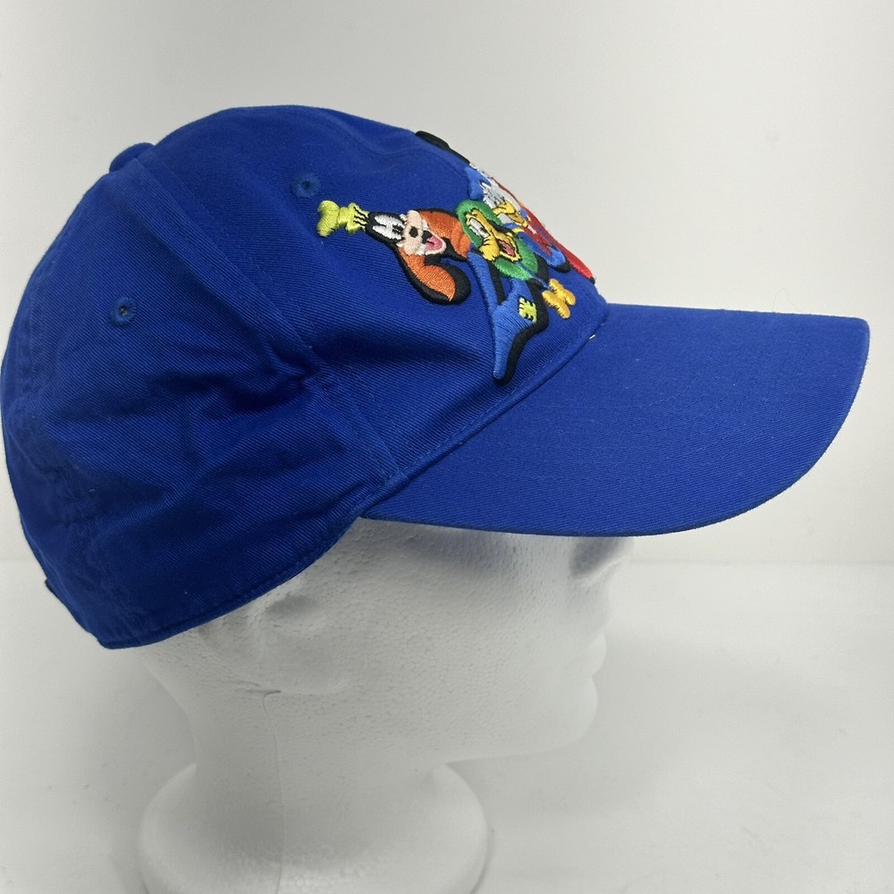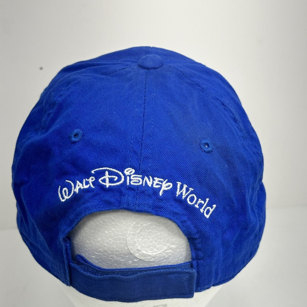 This Walt Disney World baseball hat features three beloved characters - Mickey Mouse, Goofy, and Donald Duck. The adjustable hat is made in China and is suitable for boys. The blue color with yellow embroidered accents adds a fun touch to any Disney fan's collection. The hat is a 2008 release and is a great addition to any Disneyana collection.