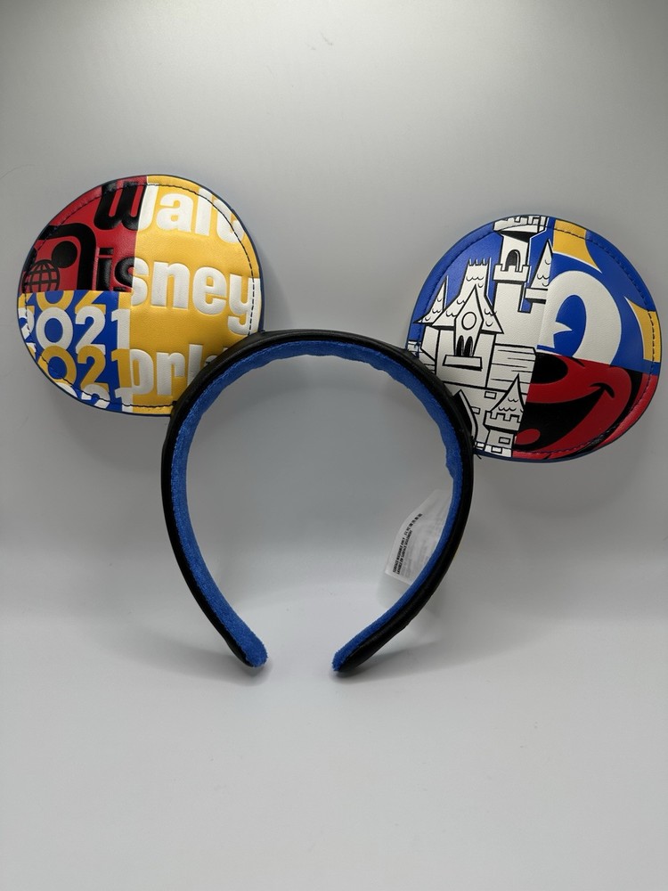 This Walt Disney World 2021 Simulated Leather Ear Headband features Mickey Mouse design, suitable for adults in a multicolor scheme. It is a unisex accessory from Disney's franchise, perfect for collectibles and Disneyana enthusiasts. Made in China, this one-size headband is a contemporary addition to any Disney fan's apparel and accessories collection. Please see photos for condition.