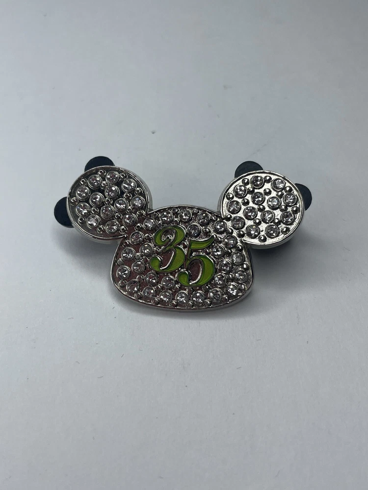 Add a touch of Disney magic to your collection with this beautiful Walt Disney World 35th Silver Jewel Jeweled Mickey Mouse Ears Ear Hat Pin. This pin features a stunning design of Mickey Mouse's iconic ears, adorned with sparkling silver jewels. The pin is perfect for those who love Disney and want to showcase their love for their favorite character. This collectible item is a must-have for any Disneyana enthusiast. It is a contemporary piece of art that captures the essence of the Walt Disney World theme park. The pin is ideal for those who want to add a unique touch to their collection, and it is a perfect gift for any Disney lover.