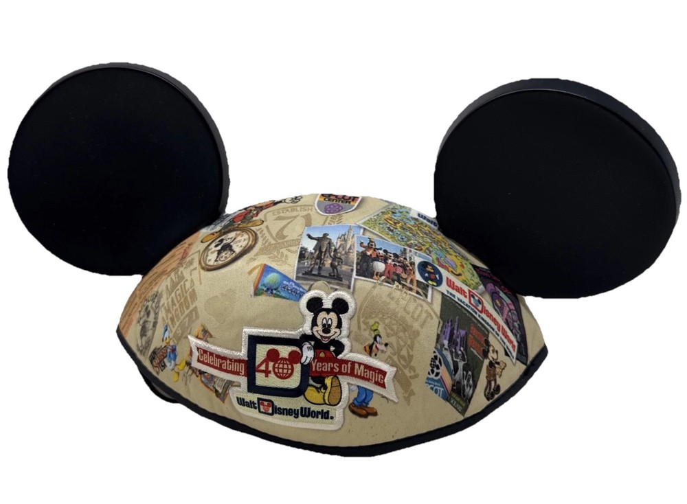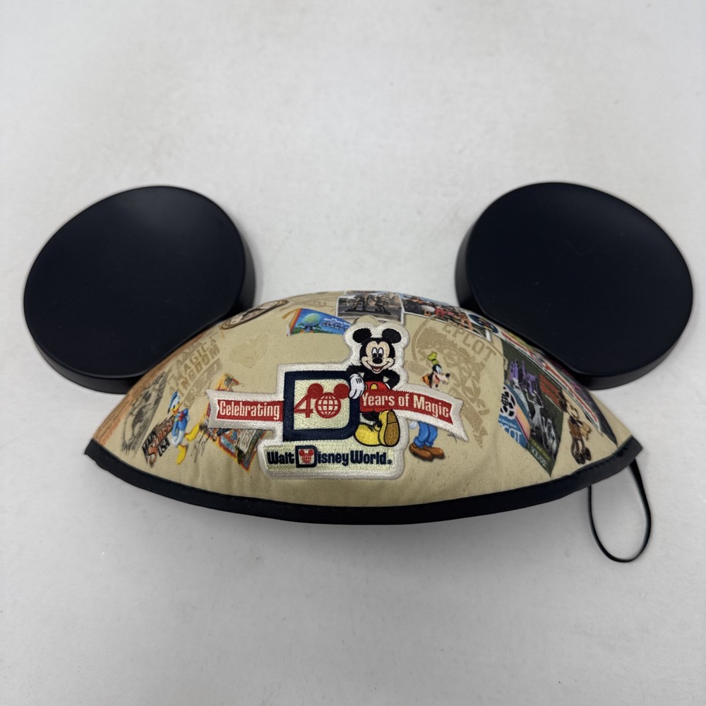 Celebrate four decades of enchantment with the Walt Disney World 40 Years of Magic Anniversary Mickey Mouse Ears Hat. A must-have for Disney enthusiasts, this beige hat features the iconic Mickey Mouse ears, bringing a touch of whimsy and nostalgia to any outfit. Whether you're a collector or simply looking to add a special piece to your wardrobe, this hat is a versatile accessory that suits a variety of occasions. Crafted with attention to detail, the hat is an unmodified, official Disney product that captures the spirit of the franchise. It's designed for an adult audience, making it a unique addition to any Disneyana collection. With its classic design and comfortable fit, this Mickey Mouse ears hat is a delightful nod to the magic that has been sparking imaginations for 40 years. Missing pin on one.