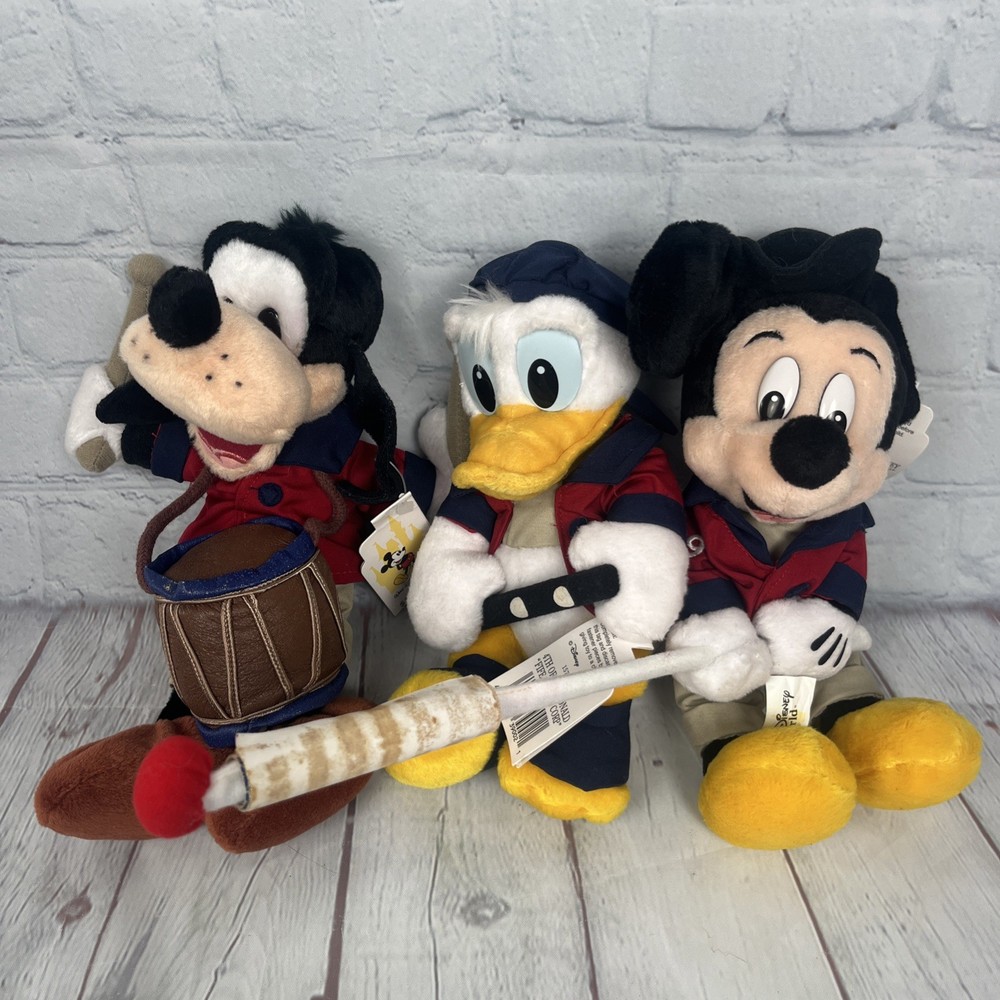 Absolutely love these patriotic beanies! The characters look fantastic and their festive outfits are so charming. Even with some age wear, they're in great shape and arrived super fast. A perfect nostalgic addition to my Disney collection!
