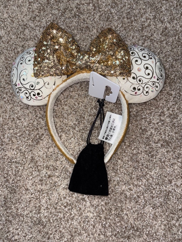 No longer sold in Disney Parks! 50th Anniversary Celebration Ears for Walt Disney World. Pretty gold accents with light up details, battery housed in black bag. Awesome pair of ears to wear to the parks or collect!