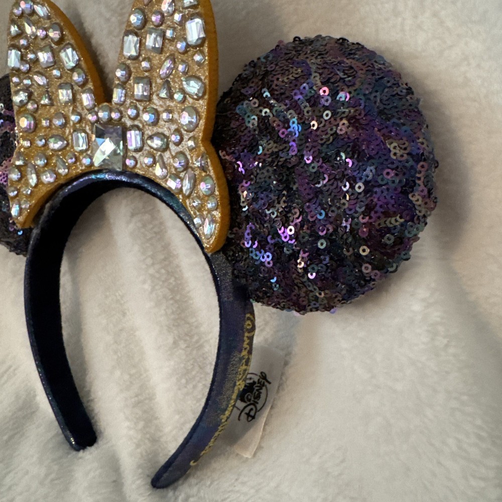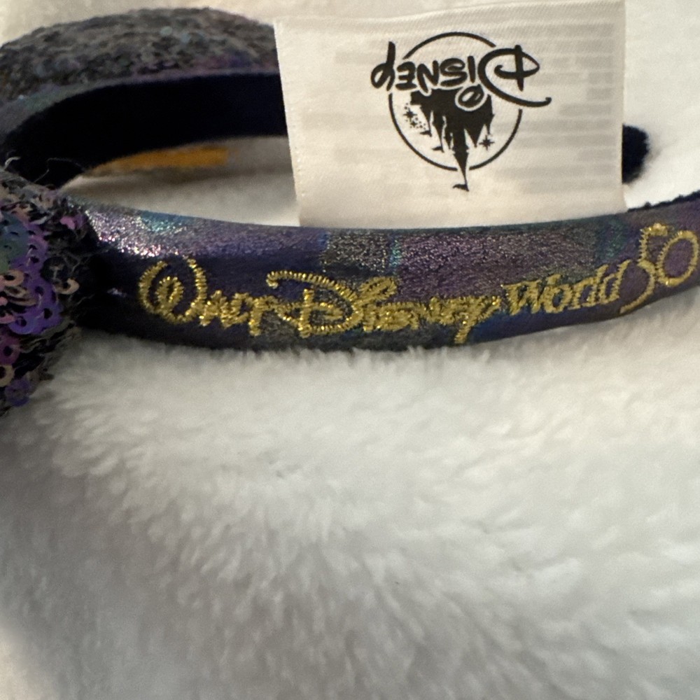 The Walt Disney World 50th Anniversary Celebration Minnie Mickey Ears Headband is a special edition accessory celebrating the iconic characters of Disney. Featuring the beloved Minnie Mouse ears design, this multicolor headband is suitable for adults of any size. It is a must-have collectible item for Disney fans, paying tribute to the contemporary Disney franchise and its rich history. Perfect for both men and women, this headband is a fun and whimsical addition to any Disney-themed outfit.