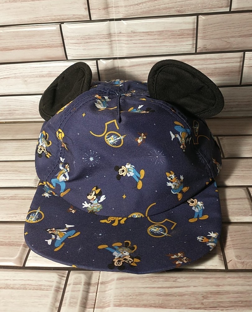 This Walt Disney World 50th Anniversary Infant Mickey Ears Hat is a must-have for any Disney fan. The hat features the iconic Mickey Mouse ears and is perfect for keeping your little one's head cool during those hot summer days at the theme park. The hat is made of high-quality materials and is sure to last for years to come. This collectible item is a great addition to any Disneyana collection and is perfect for displaying on a shelf or in a drawer. The hat is a featured refinement of the Walt Disney World franchise and is sure to be a conversation starter among other Disney enthusiasts. Don't miss out on this opportunity to own a piece of Disney history.