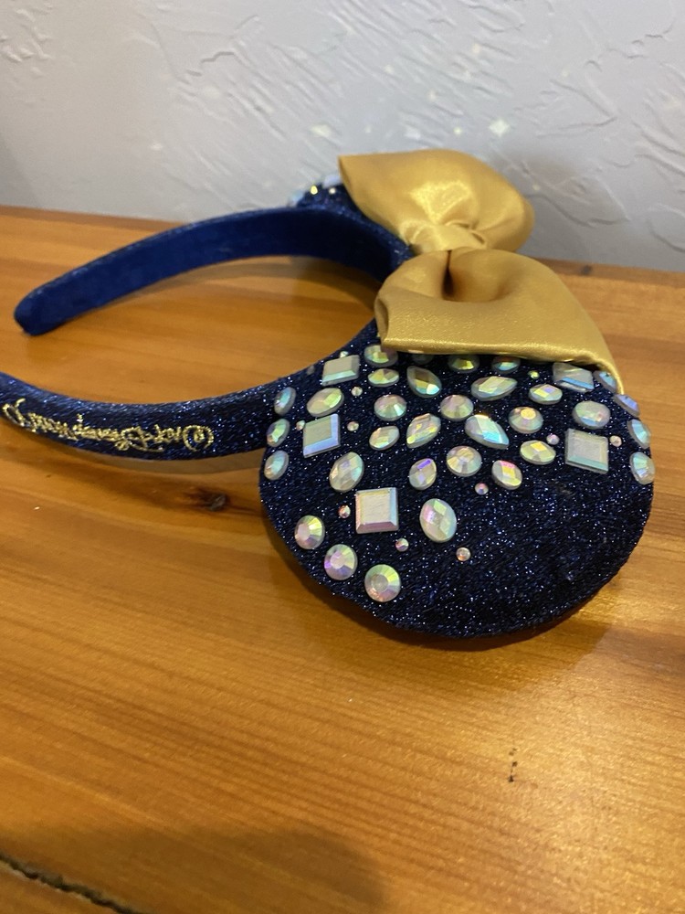 This is a Walt Disney World 50th Anniversary Jeweled Ear Headband designed for adults. The headband features a multicolor design with jewels and is part of the Disney franchise. It is a collectible item and would make a stylish accessory for any Disney fan to wear. The tag has been cut and some jewels are missing on the ear, please refer to pictures