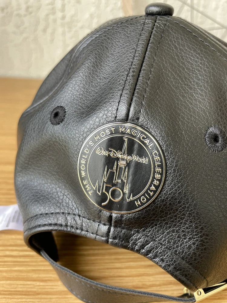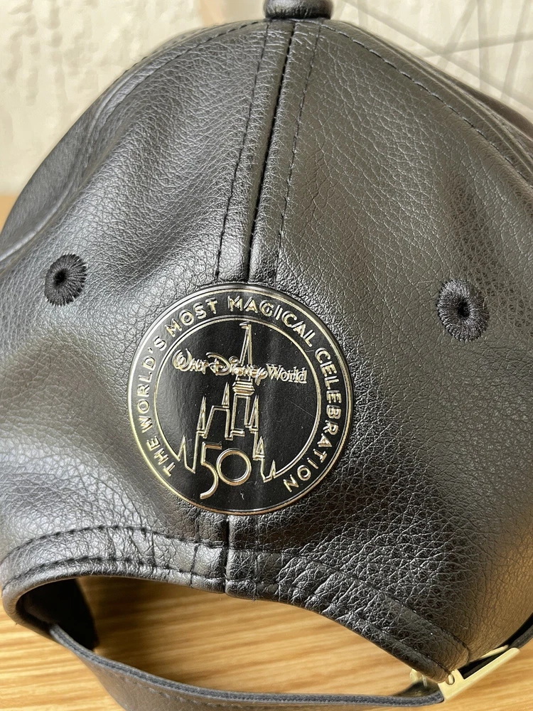 Walt Disney World 50th Anniversary Logo Black Baseball Cap Hat New faux leather. For adult Perfect conditions New with tags Smoke free home