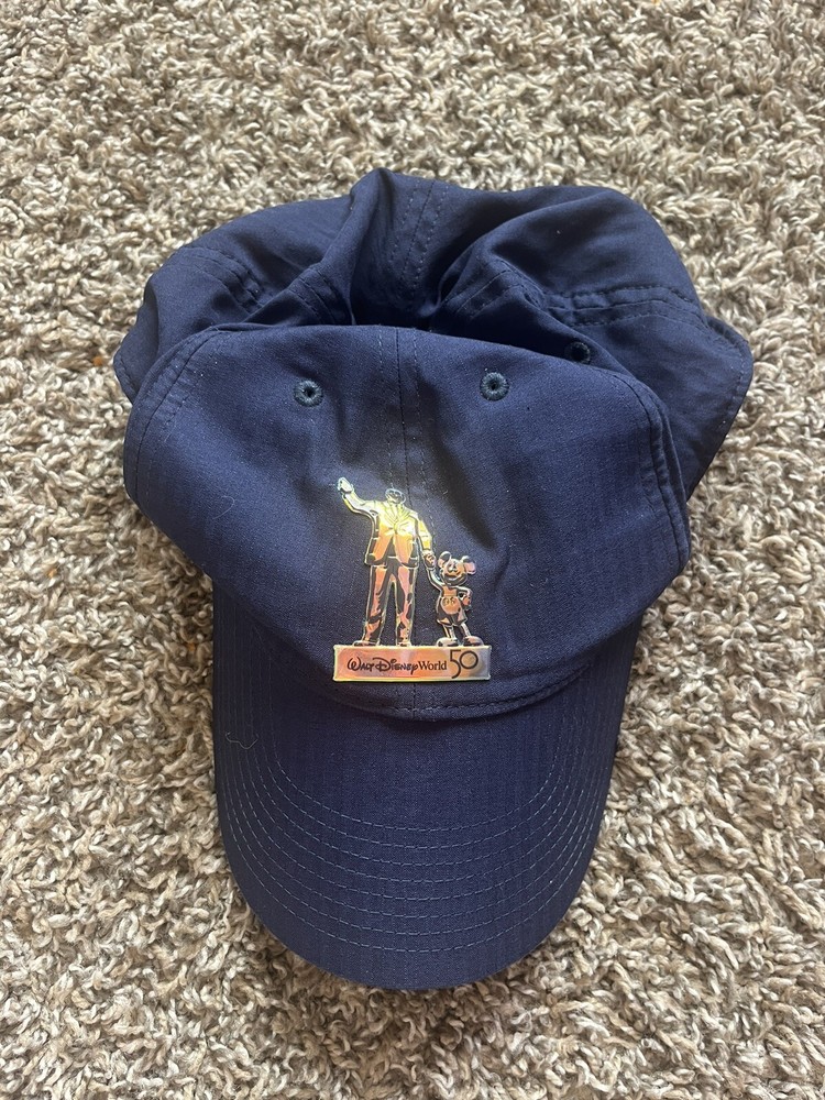Celebrate a magical milestone with the Walt Disney World 50th Anniversary Nike Golf Legacy Adjustable Baseball Hat. Featuring the iconic Mickey Mouse, this blue hat is a collector's delight, suitable for Disney enthusiasts of all ages. The unisex design makes it a versatile addition to any fan's wardrobe, perfect for commemorating a half-century of enchantment. Crafted with quality materials, this hat is not only a fun Disneyana collectible but also a functional accessory for sunny days. The adjustable strap ensures a comfortable fit for all-day wear, whether you're on the golf course or enjoying a day at the theme parks. Add a touch of Disney magic to your collection with this stylish and timeless piece.