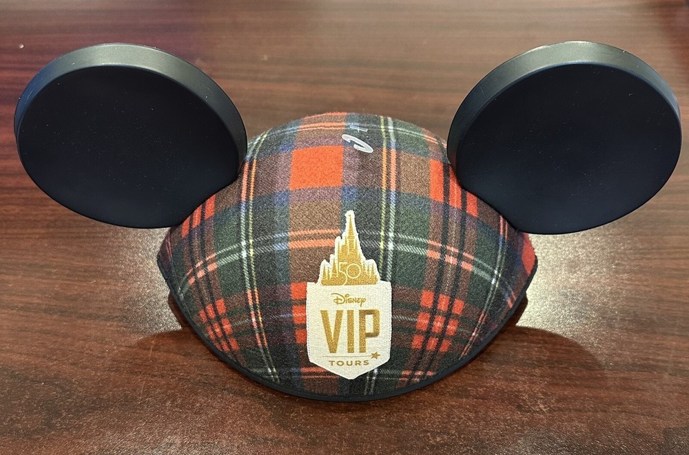 Walt Disney World 50th Anniversary VIP Tour Plaid Mickey Mouse Adult Ear Hat NEW...
