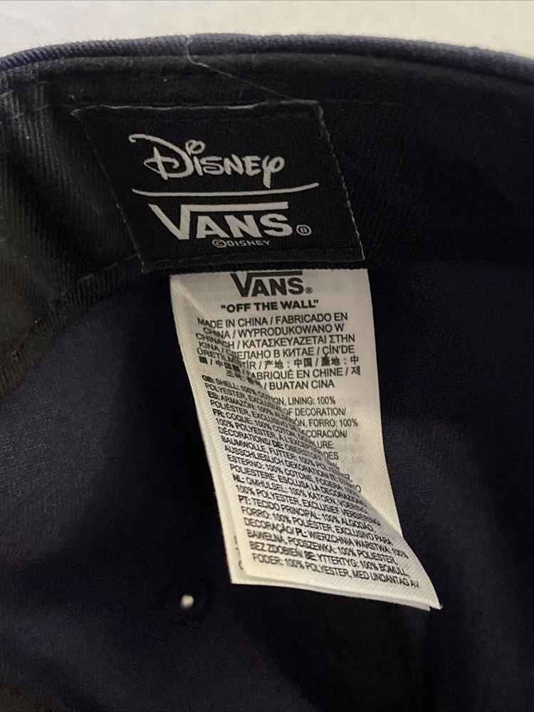 Celebrate the 50th anniversary of Walt Disney World with this Vault Collection Vans Off The Wall Hat. This blue hat features the beloved character Mickey Mouse and is perfect for any Disney fan. The hat is made for adults and is a great addition to any collection. The Disneyana franchise has created a timeless piece of apparel that will be cherished for years to come. Used Very nice condition Hat is uncleaned or washed. Please see pictures Ships in box to protect hat I ship daily Thank you