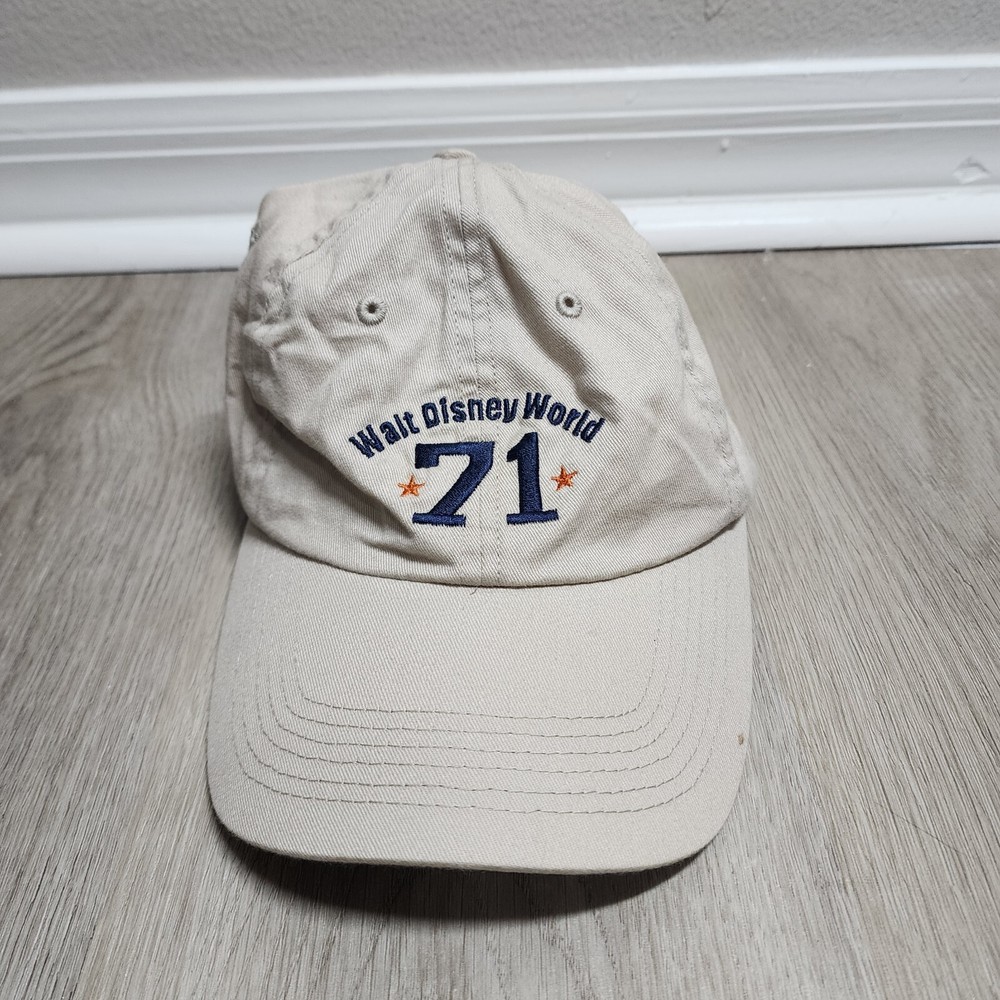 Show off your love for all things Disney with this Walt Disney World 71 Cap Hat. Made from 100% cotton, this adjustable hat comes in a beautiful beige color that will complement any outfit. The hat features the iconic Disney Franchise logo, making it a must-have for any Disney enthusiast. Perfect for collectors of Disneyana, this contemporary hat is a great addition to any collection. It is designed for adults and is adjustable to ensure a comfortable fit for all head sizes. Get ready to add some magic to your wardrobe with this stunning Disney hat.