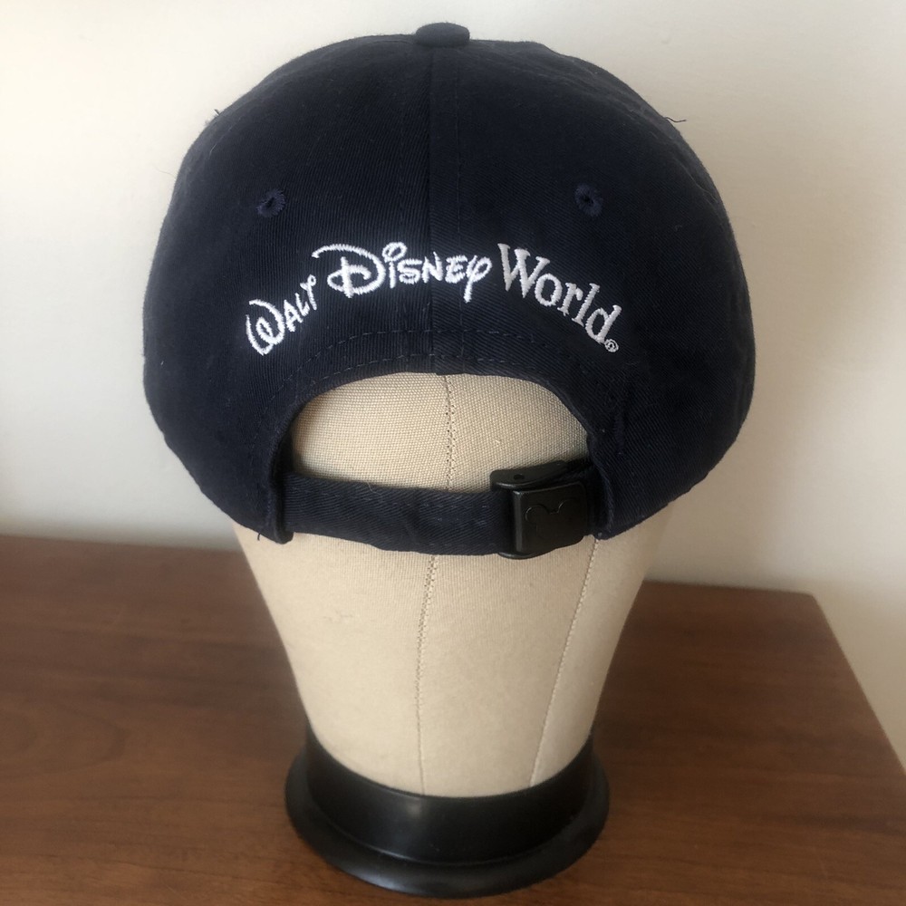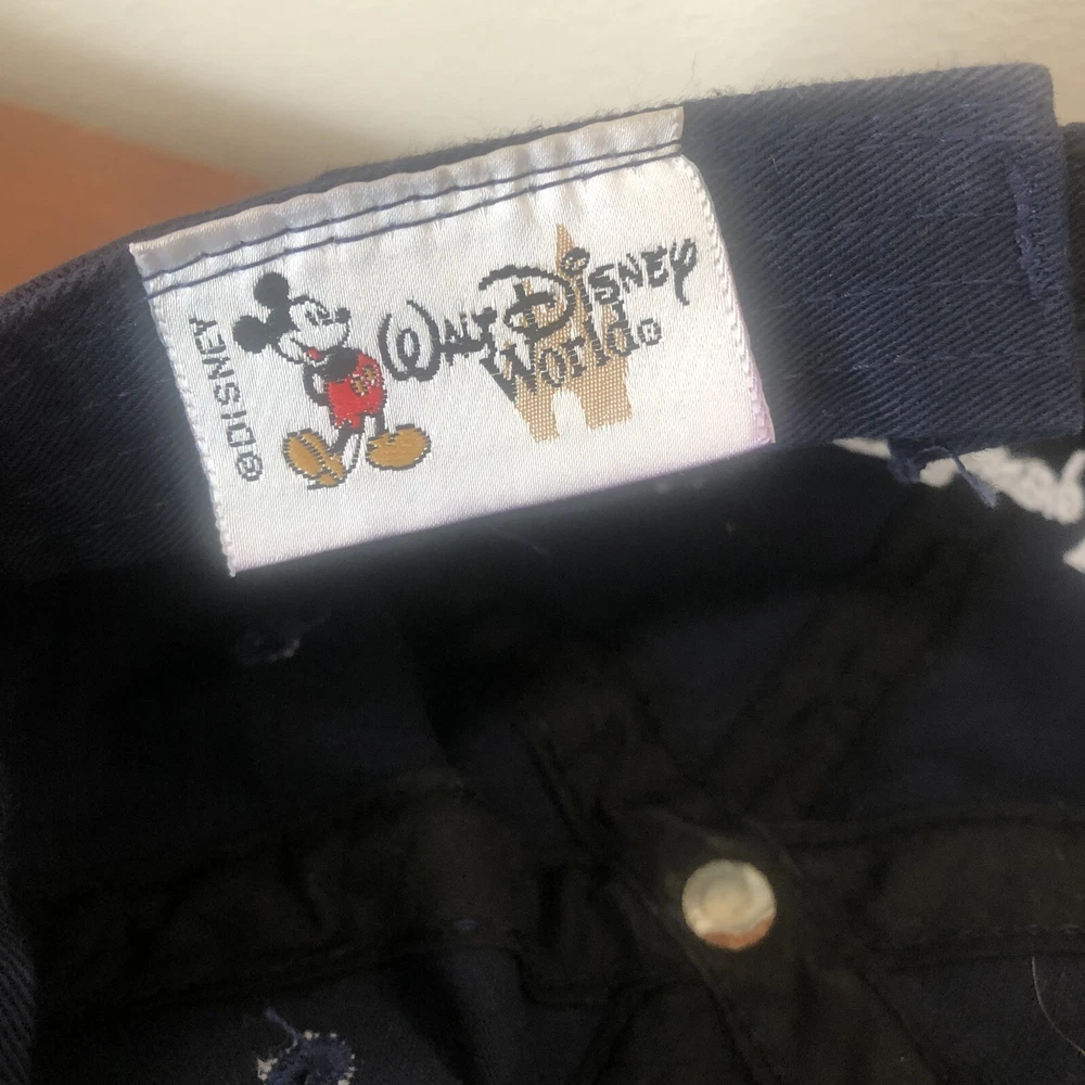 This is a Walt Disney World adult blue baseball cap with adjustable strap back and a red, white and blue patriotic flag Mickey Mouse head outline appliqued on the front. Very good condition. Fabric ta...