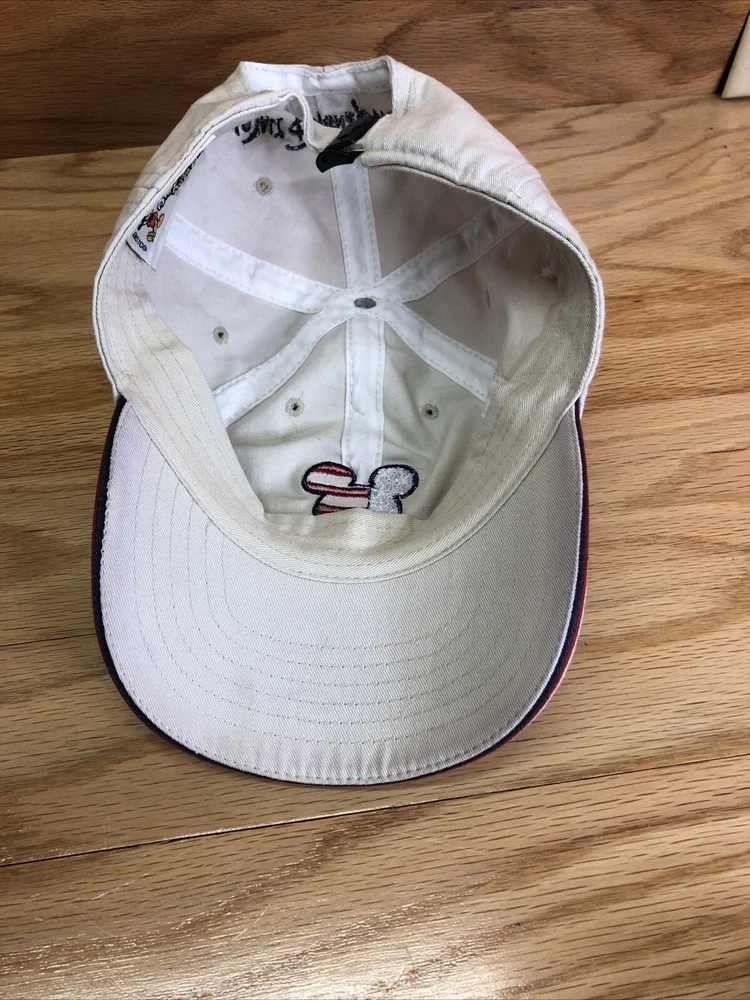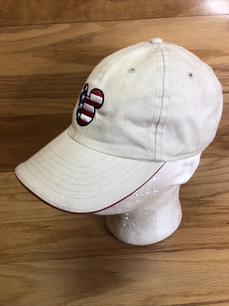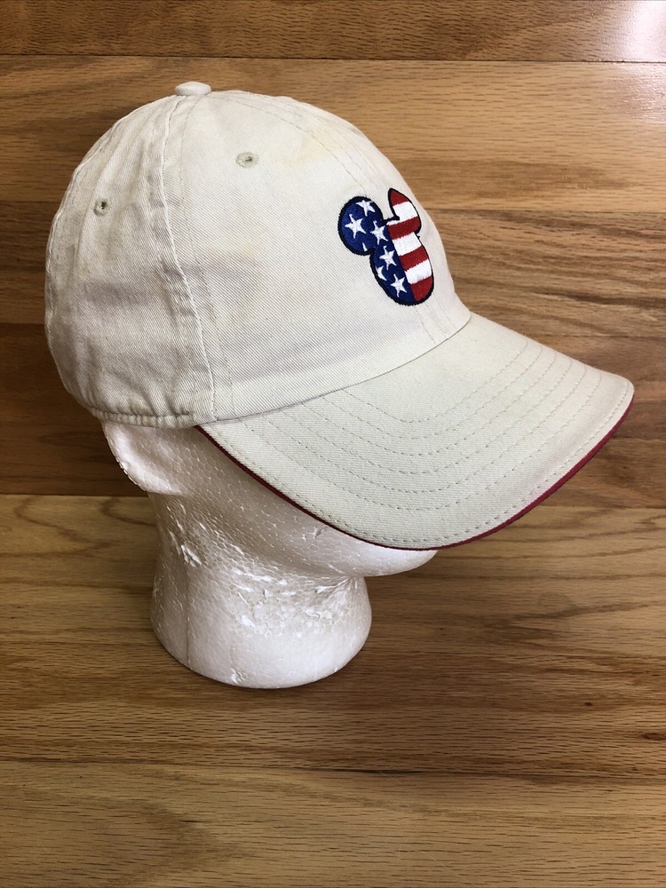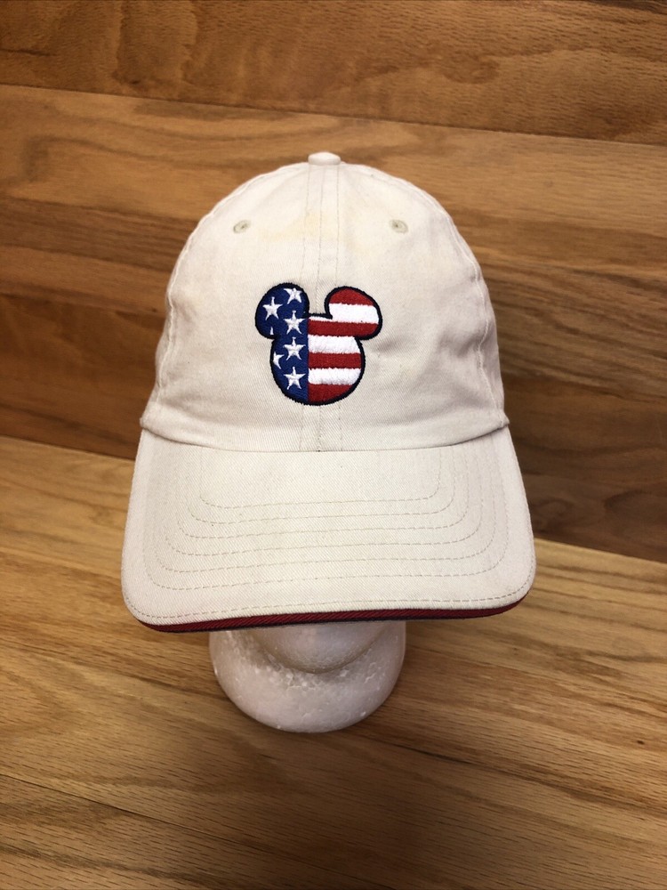 Show off your love for Walt Disney World and the USA with this Mickey Mouse themed baseball cap. Made of durable cotton canvas, this hat features an embroidered logo and an adjustable strap back for a comfortable fit. Perfect for travel or casual occasions, this one size fits all cap is a great addition to any Disney fan's collection. The beige color and solid pattern make it a versatile accessory that can be paired with any outfit. Whether you're a patriot or just a fan of Disney, this hat is a must-have. May have marking that could require cleaning Please contact with any questions Fast and safe shipping