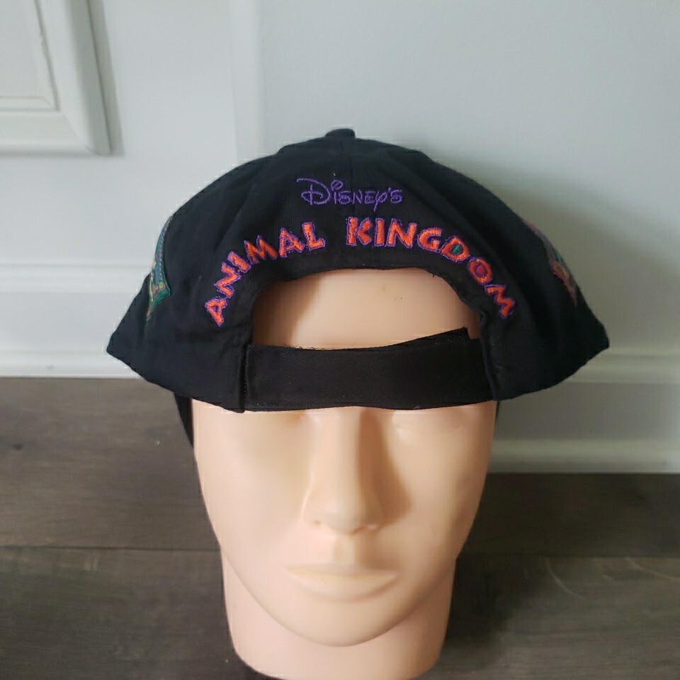 In great used condition. Please see all pictures to confirm condition This unique Walt Disney World Animal Kingdom hat is a must-have for any Disney fan. The black strapback hat features character tiles that showcase the beloved Disney characters. Perfect for collectors, this hat is a great addition to any Disneyana collection. The hat is made for those who love Disney and want to show off their love for the franchise. This hat is perfect for anyone who wants to add a touch of Disney magic to their everyday look.