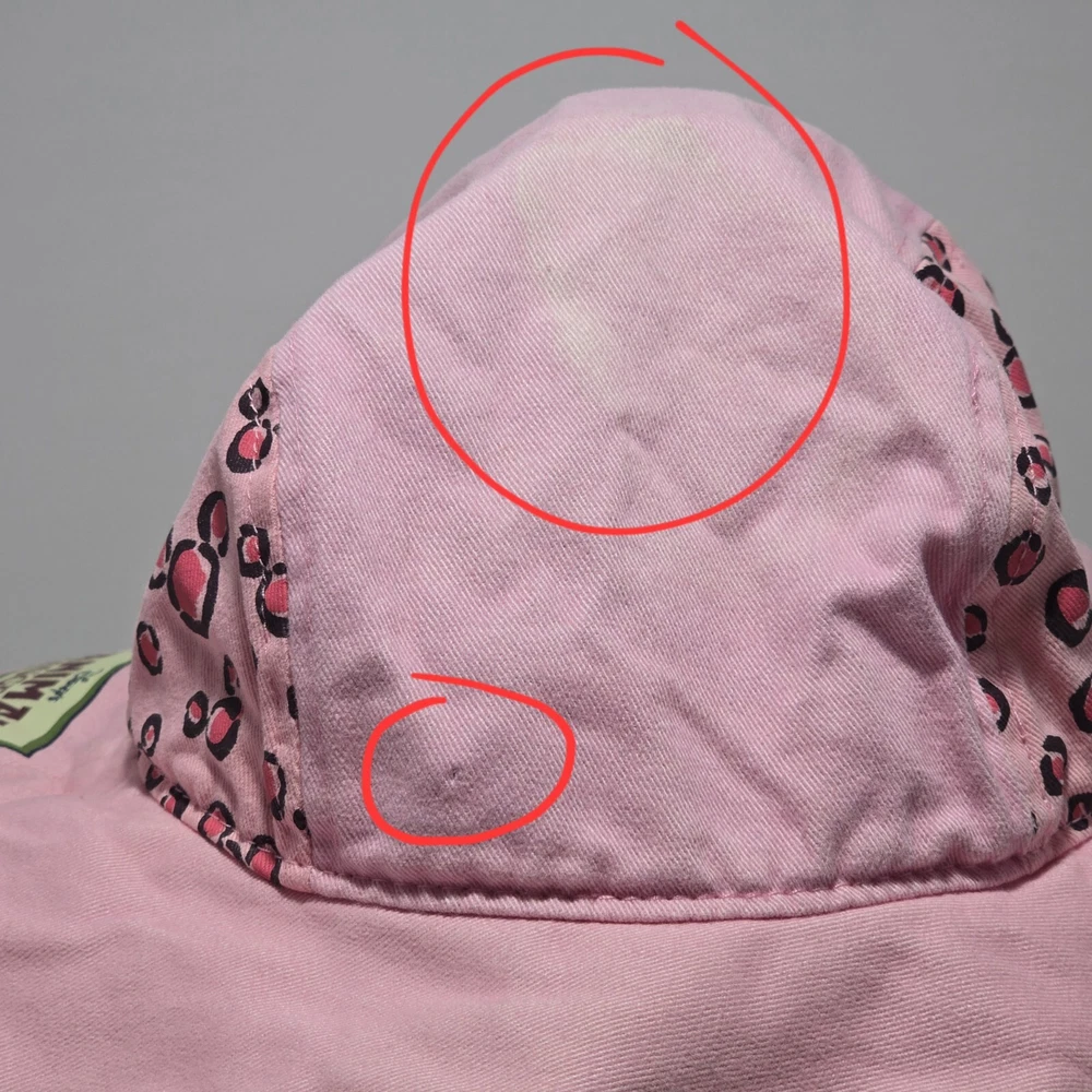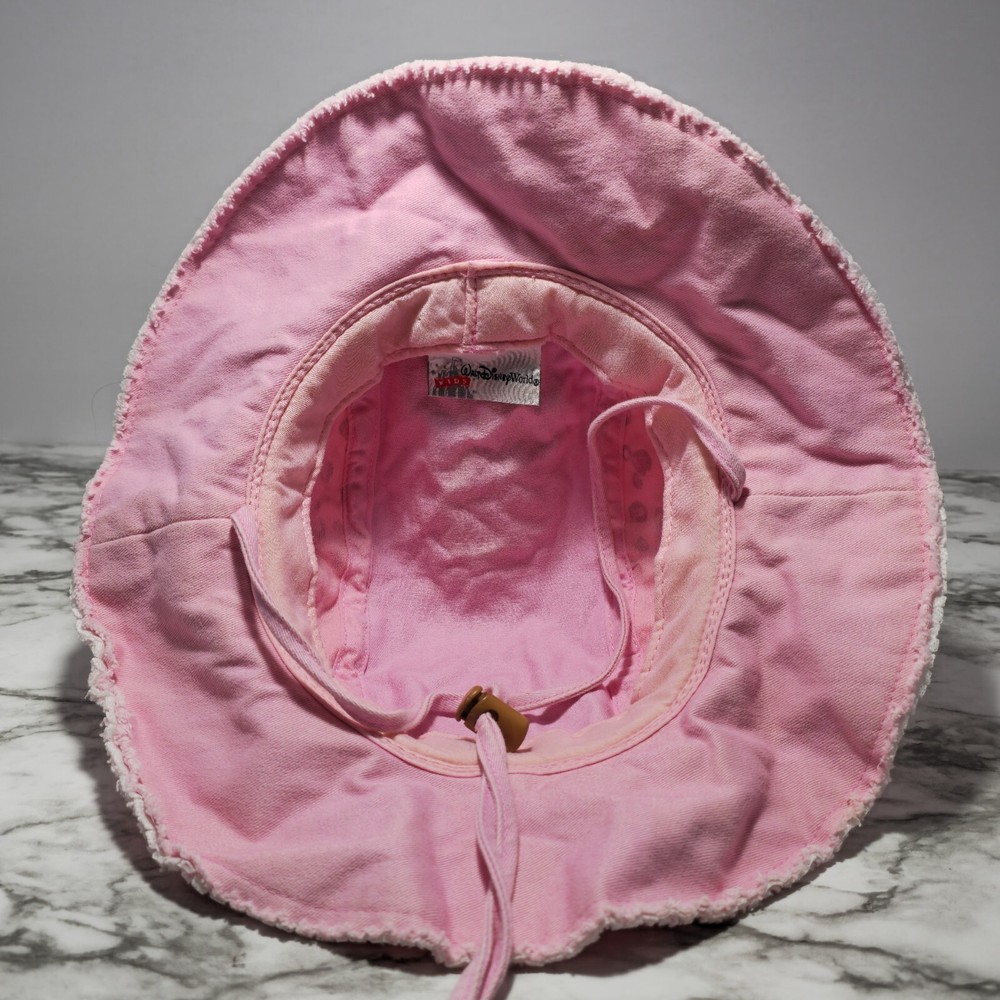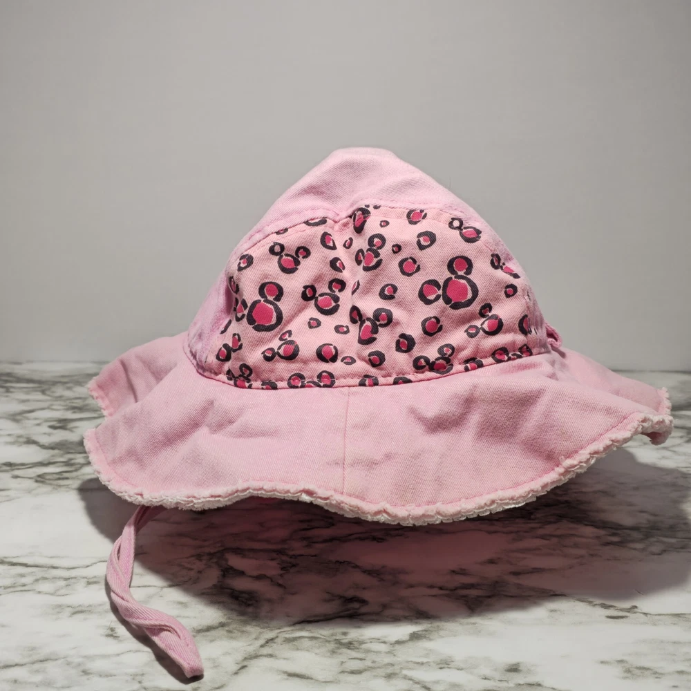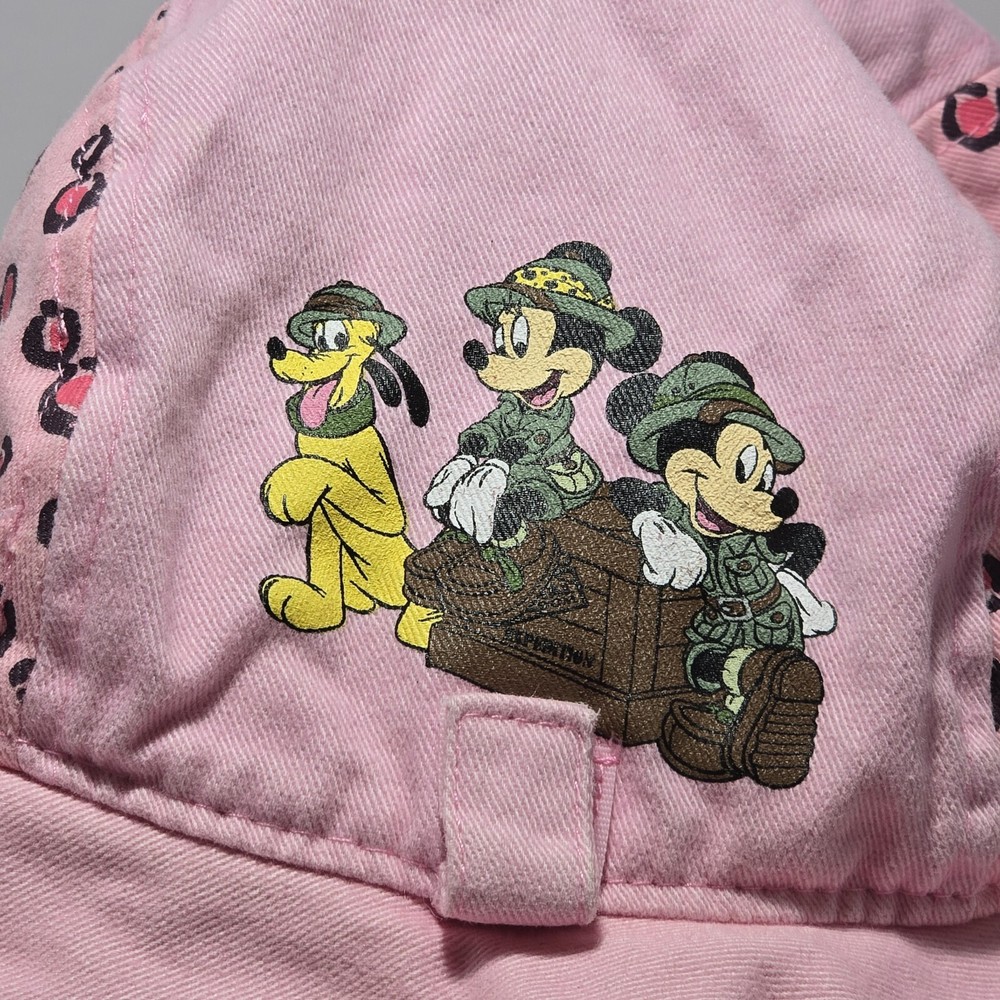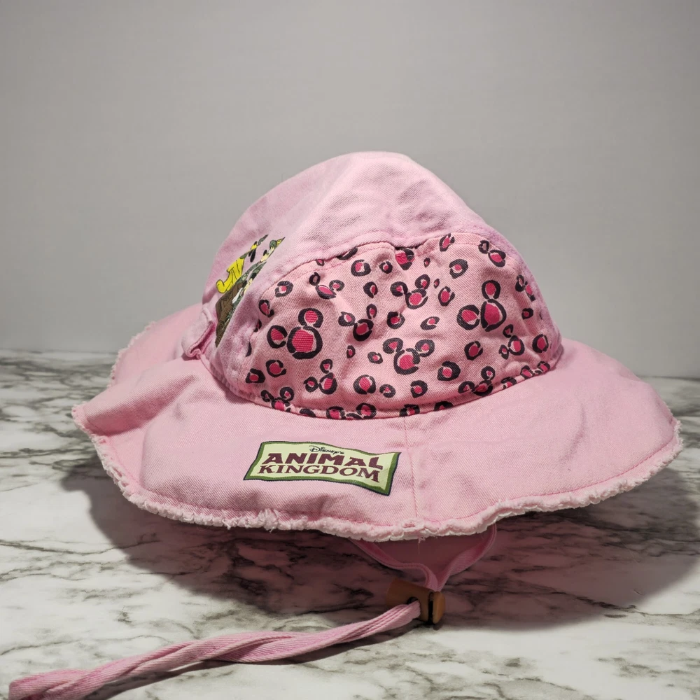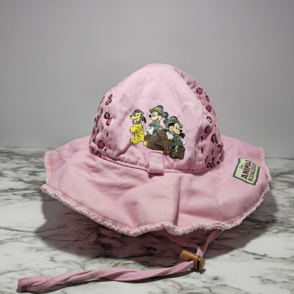 **This item has been used for one day during a Disney trip. Does have some sun fade on top of hat and a very small pin size hole on side that is barely noticeable (See photos)** This adorable pink bucket hat is a must-have for any young Disney fan. Featuring beloved characters such as Mickey, Minnie, and Pluto, this hat is perfect for a day out on the town or a safari adventure in Animal Kingdom or even Disney World/Land. Made in China with high-quality materials, this hat is suitable for toddlers and girls alike. The hat is part of the Disneyland franchise and is a great addition to any Disney-themed collection. Whether you're attending a convention or event, or simply looking for a fun accessory for your child, this hat is sure to delight. Don't miss out on the chance to add a touch of Disney magic to your little one's wardrobe!