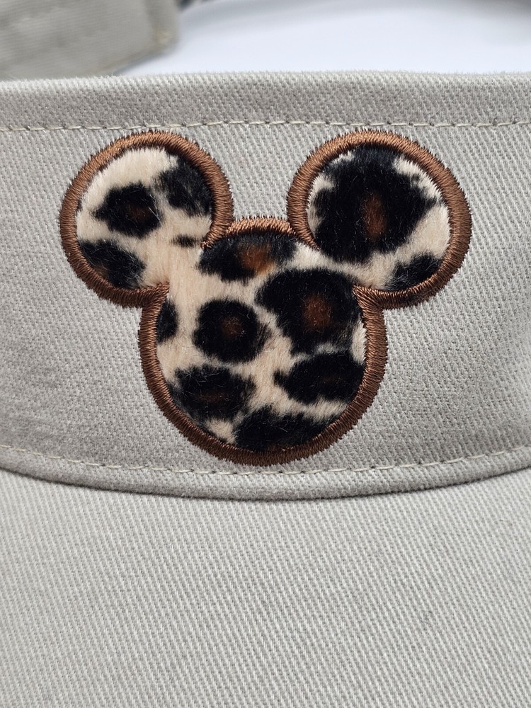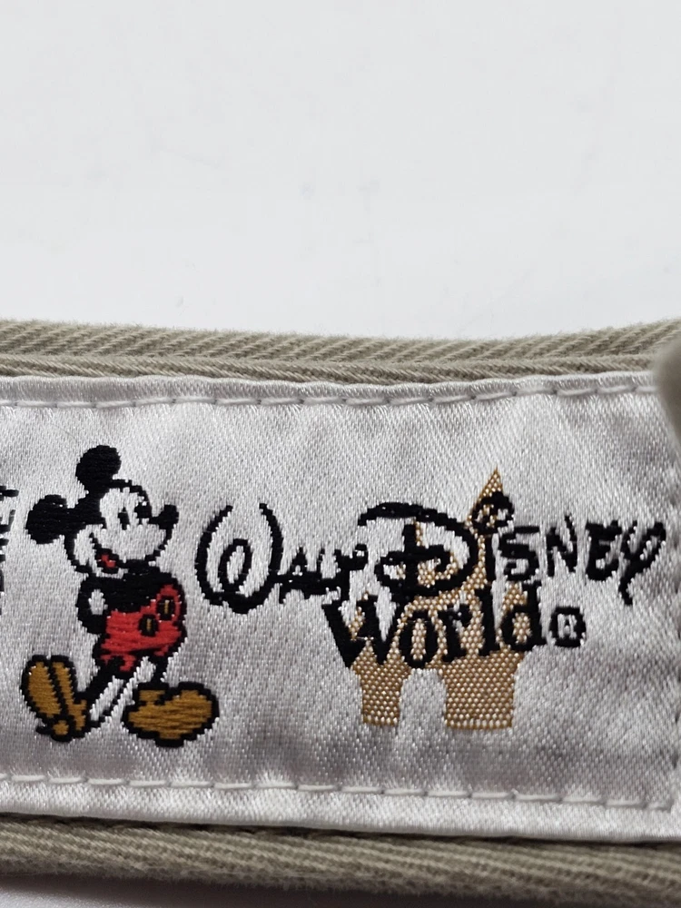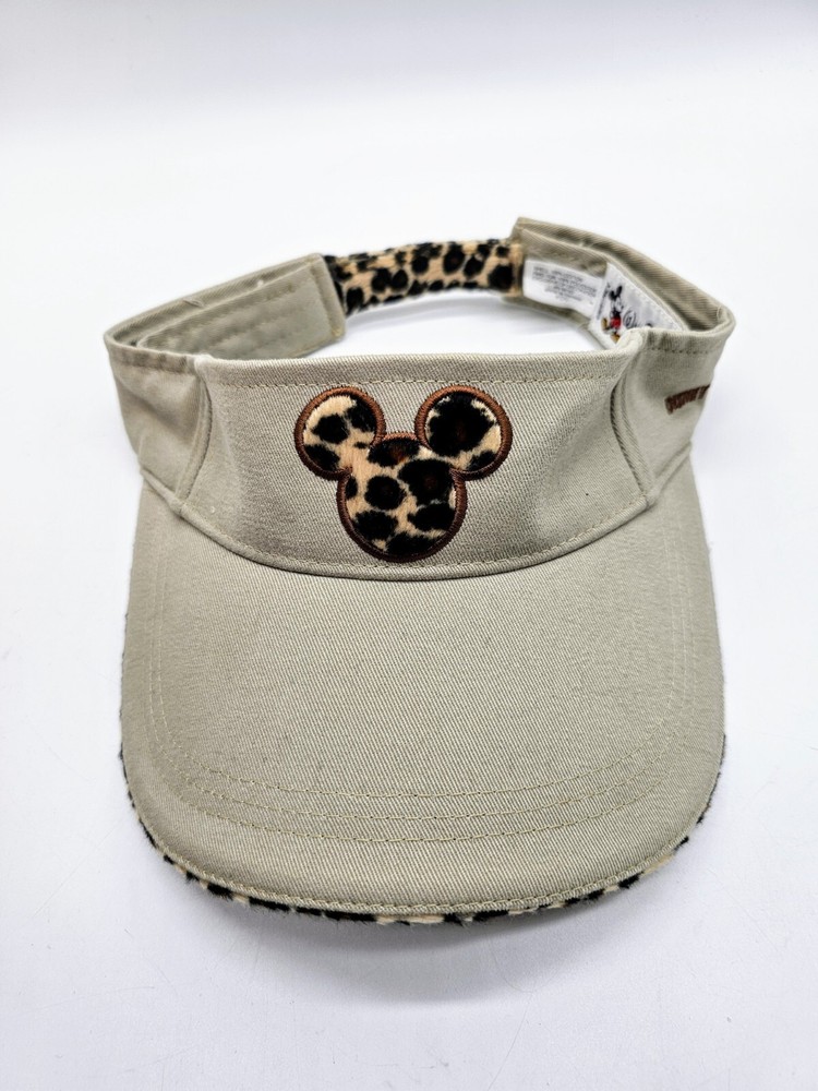 Show off your love for all things Disney with this Walt Disney World Animal Kingdom Leopard Mickey Mouse Adult Visor Sun Hat. The beige color and leopard print design make it stylish and versatile, while the embroidered Mickey Mouse on the front adds a touch of whimsy. The one-size-fits-all design makes it suitable for anyone, regardless of age or gender. Crafted in Taiwan with attention to detail, this hat is perfect for collectors or anyone looking to add a touch of Disney magic to their wardrobe. Whether you're visiting Walt Disney World's Animal Kingdom or simply looking for a fun and functional hat, this Mickey Mouse visor sun hat is sure to please. Pre-owned in excellent condition