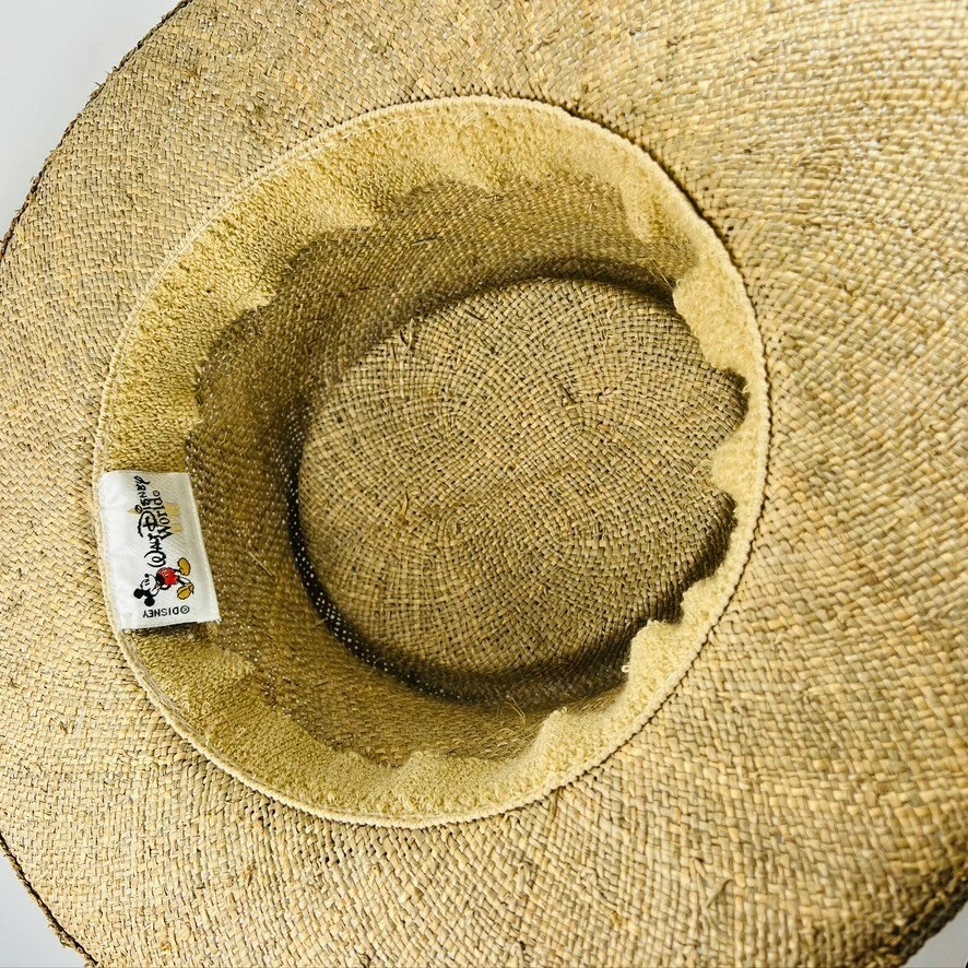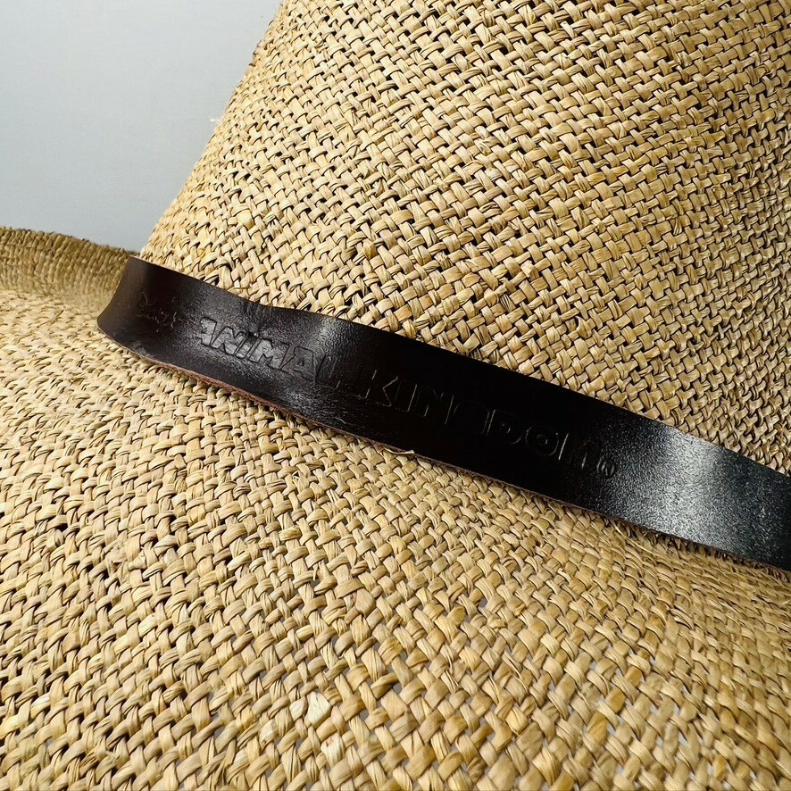 Walt Disney World Animal Kingdom Straw Hat Natural Fiber Leather Trim Elastic...
