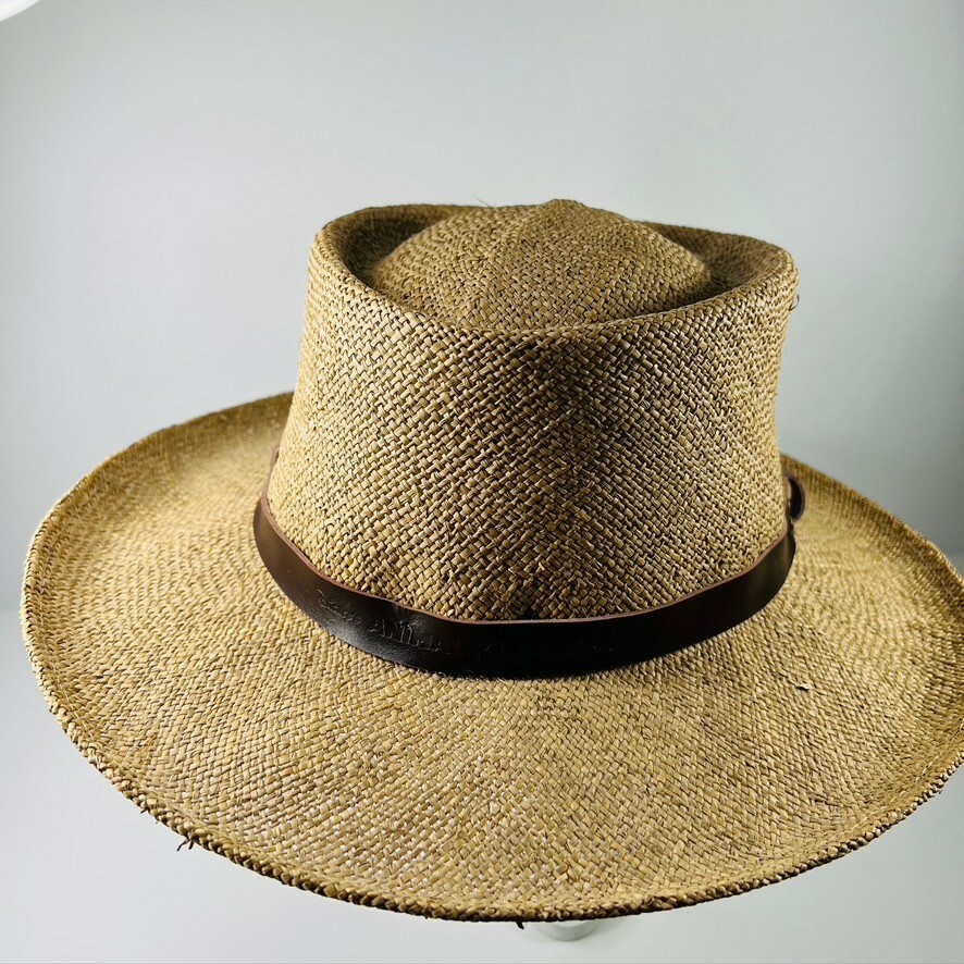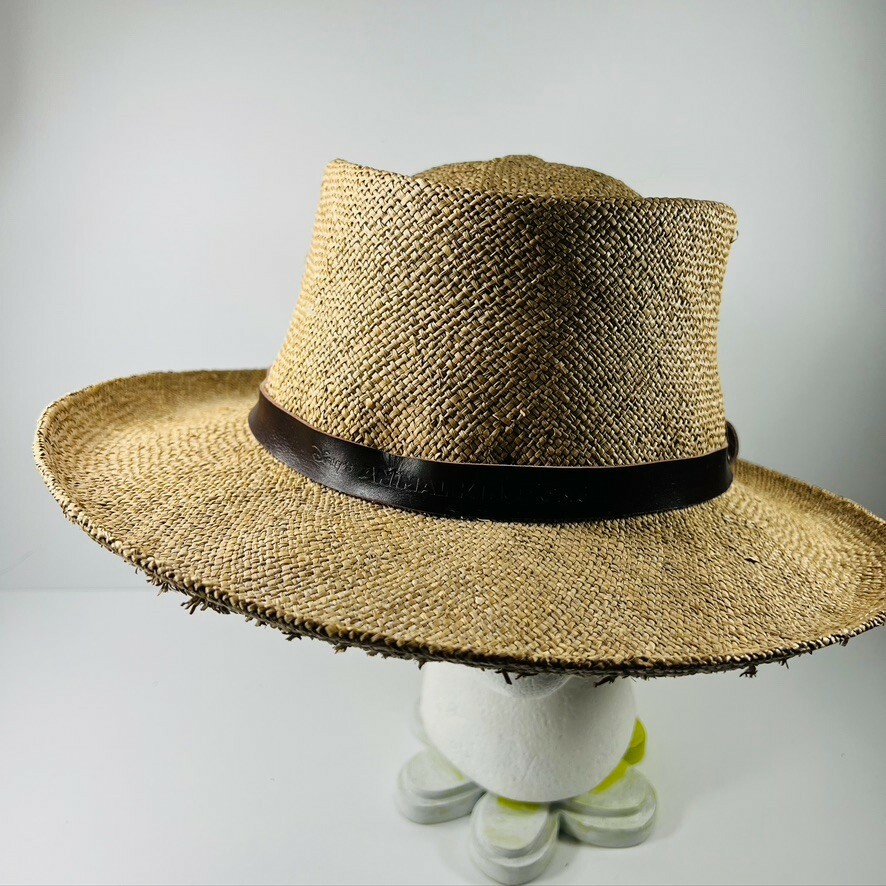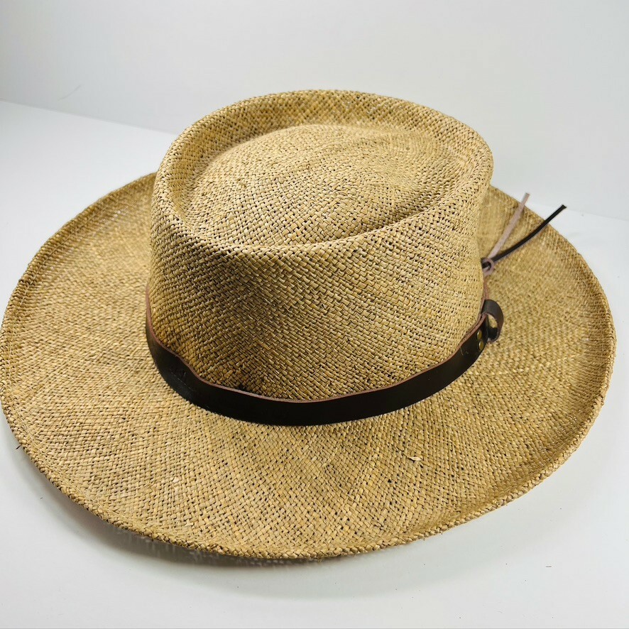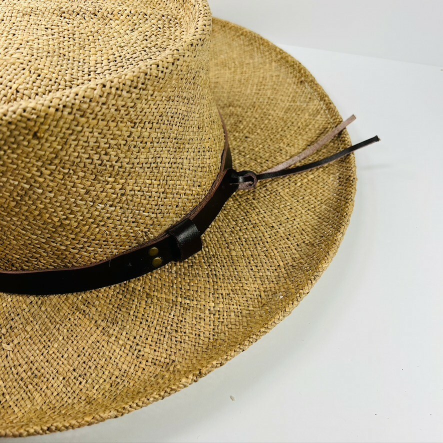 Walt Disney World Animal Kingdom Straw Hat Natural Fiber Leather Trim Elastic
