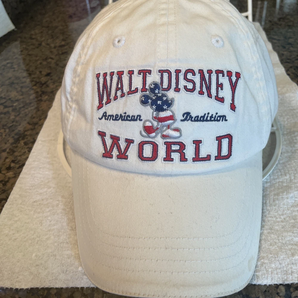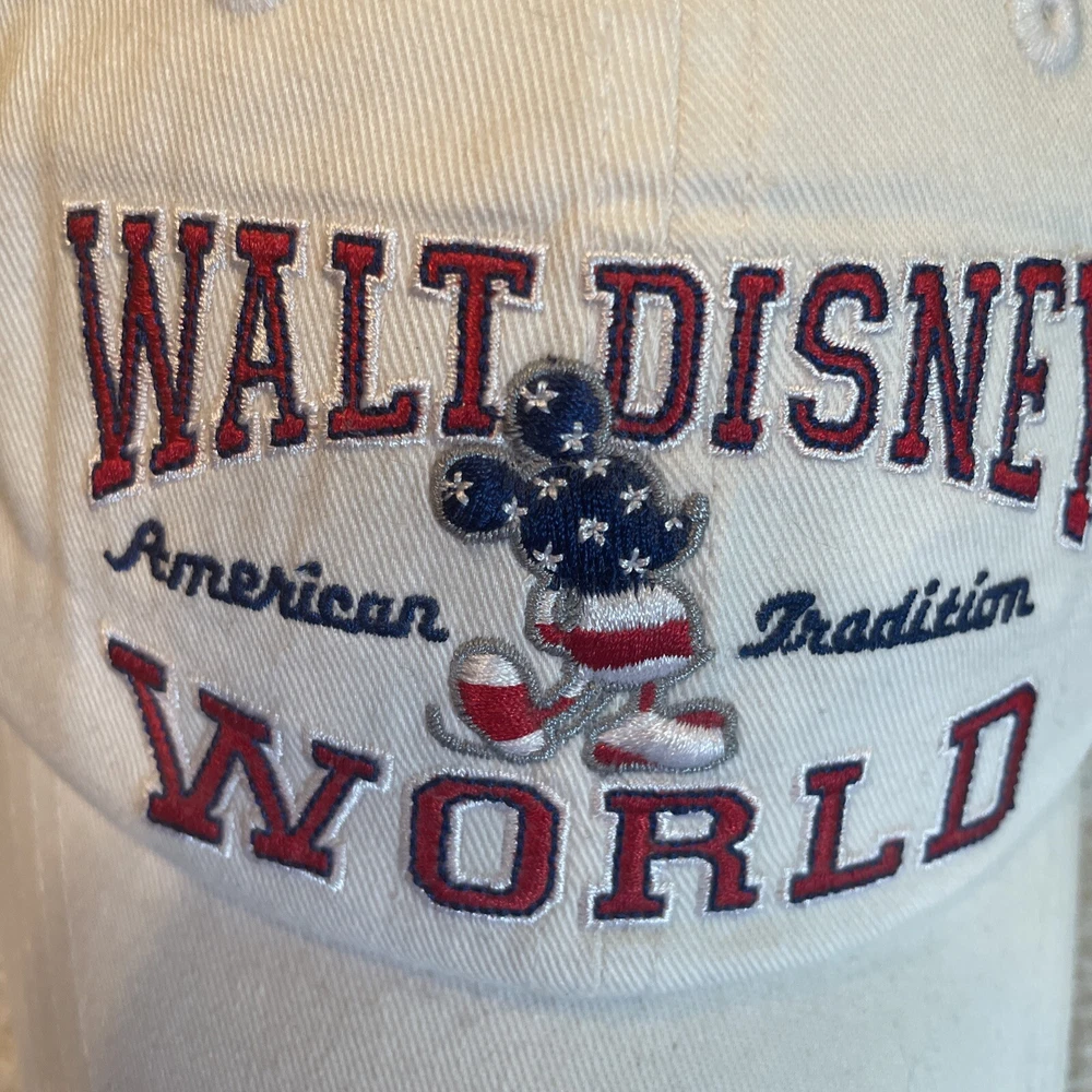 This vintage Walt Disney World baseball cap is a must-have for any Disney collector or fan. The classic white color and Mickey Mouse design on the front make it a timeless piece. This unisex cap is suitable for adults of any age and features the Disney franchise. The cap is from the 1980s and has not been modified. It is one size fits all and is perfect for any Disney lover who wants to show off their love for the brand. Add this to your Disneyana collection today!
