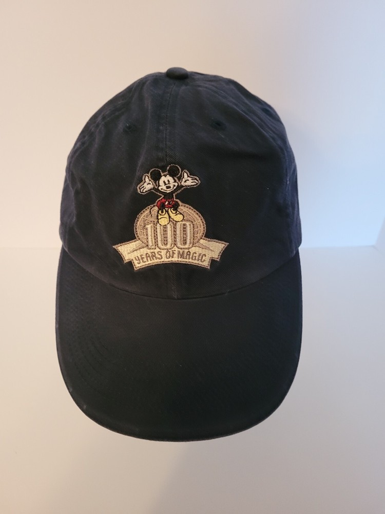 Celebrate the 100th anniversary of Disney World with this adjustable hat strapback featuring Mickey Mouse. The multicolor cap is made of cotton canvas and is perfect for casual occasions. The strapback is adjustable, making it a great fit for anyone. The hat is not signed or personalized and is not a vintage item. It is a great addition to any Disney fan's collection. This baseball cap is perfect for all seasons, including winter, summer, fall, and spring. Excellent condition!..