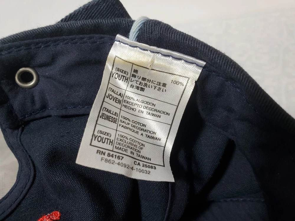 Adjustable strapback. 100% cotton, lightly worn, note several small marks on brim of cap. We are happy to answer any questions. ____________________________________________________ Safe shipping within one business day. Stockloc: Hatbox2