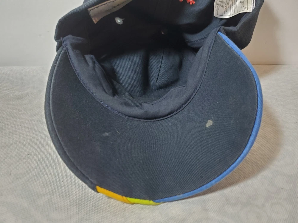Adjustable strapback. 100% cotton, lightly worn, note several small marks on brim of cap. We are happy to answer any questions. ____________________________________________________ Safe shipping withi...