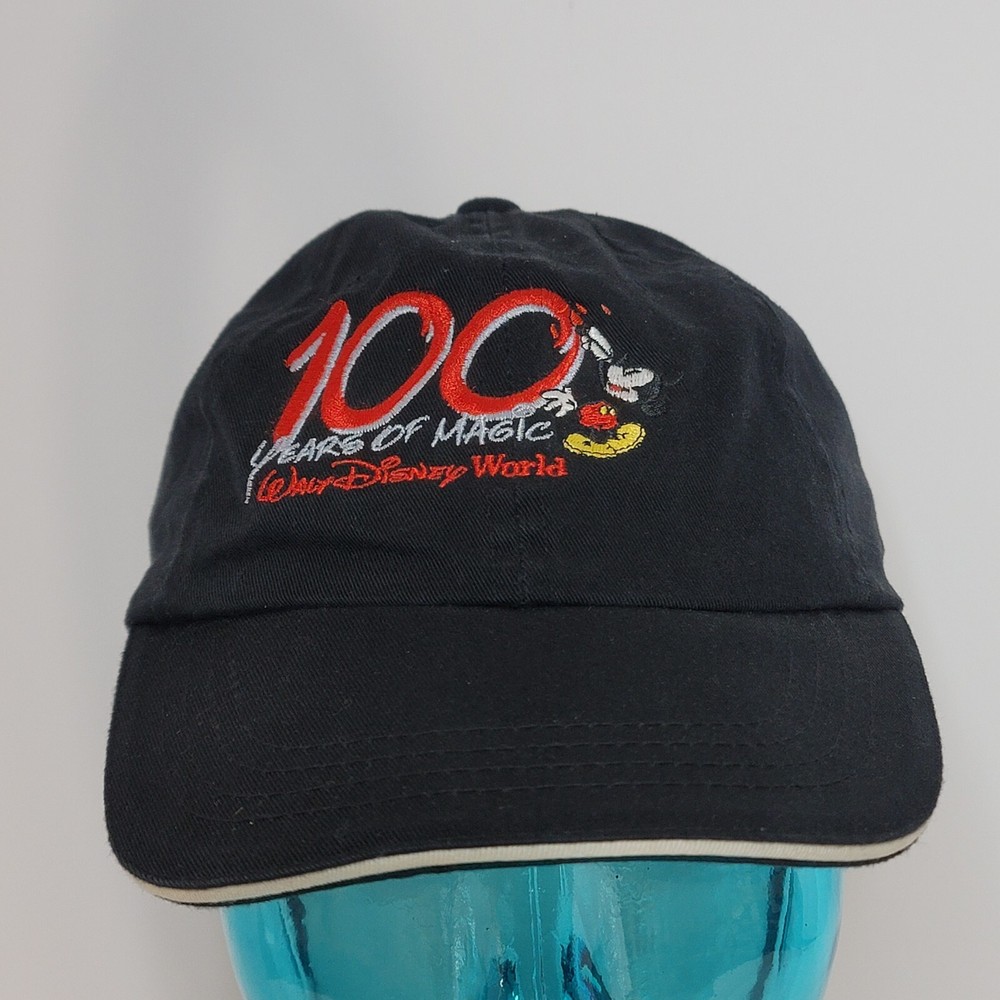 This Walt Disney World baseball hat celebrates 100 years of magic with Mickey Mouse. The black color and Disney franchise make it a perfect addition for any Disneyana collector or fan. The hat is one size fits all and features the iconic Mickey Mouse character. The brand is Disney, so you can trust the quality and craftsmanship of this hat. Ideal for adults, this hat is a must-have for anyone who loves Disney and Mickey Mouse. This gently worn hat is in excellent condition. I sell new and used clothes. All previous worn clothing has been properly cleaned. Please make sure to check out my store if you want to combine shipping for multiple orders. Please follow me. I list daily. Thank you for your interest.
