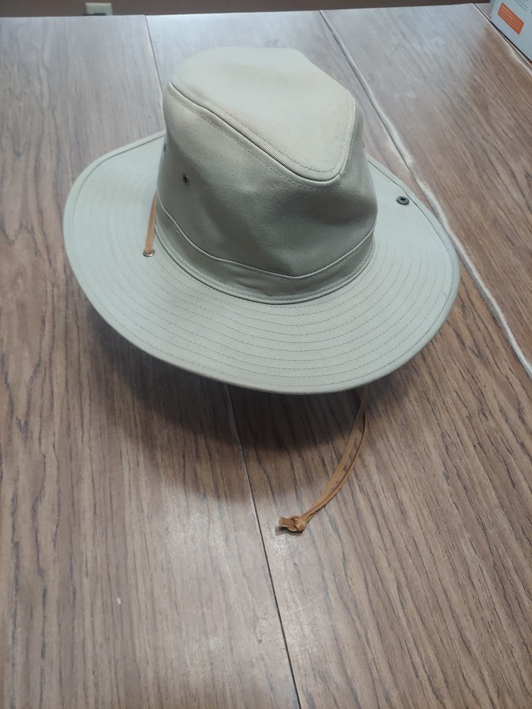 These hats are pre-owned and have a very slight stain on the underside of the brim. Please contact me with any questions...