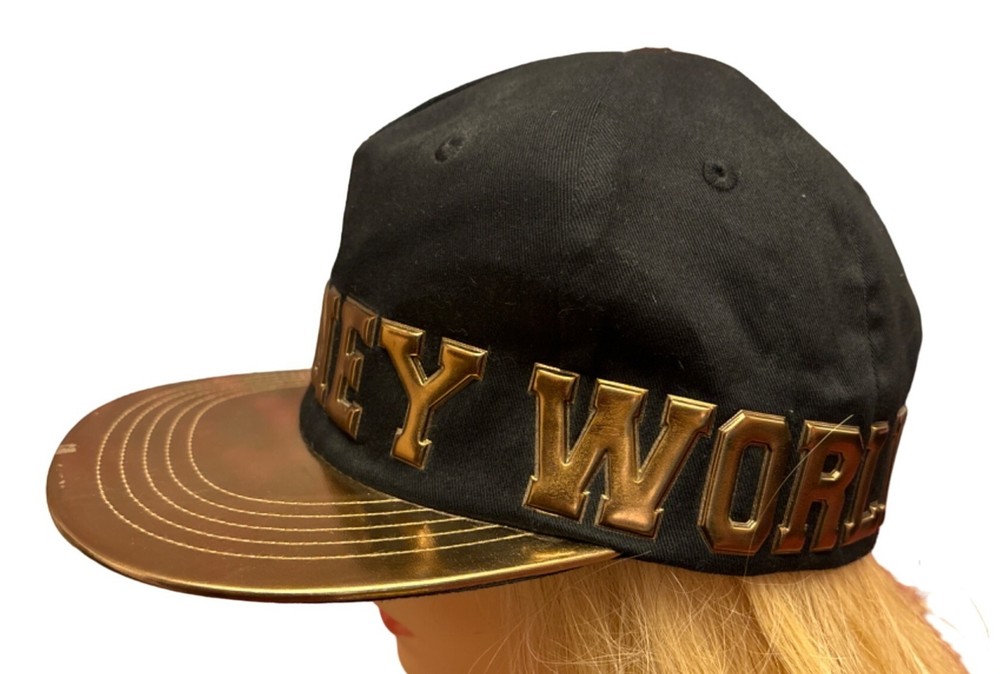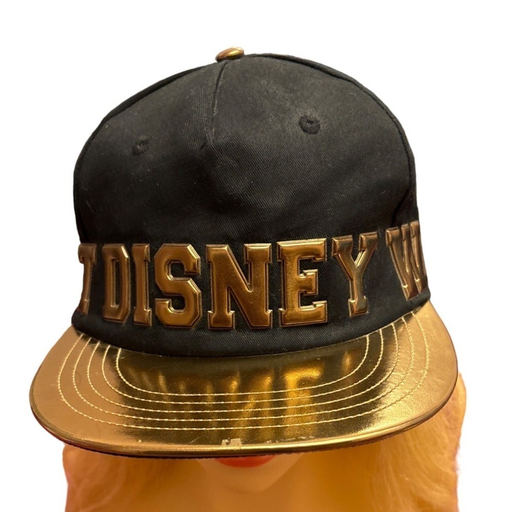 This stylish Walt Disney World snapback features a bold black and gold color scheme. Designed for durability and comfort, it fits adults with head sizes ranging from 57 to 60cm. • Black & Gold Design • Snapback Closure • Fits Adult 57-60cm • Durable Material • Disney Parks Branding Light wear on the brim's underside.